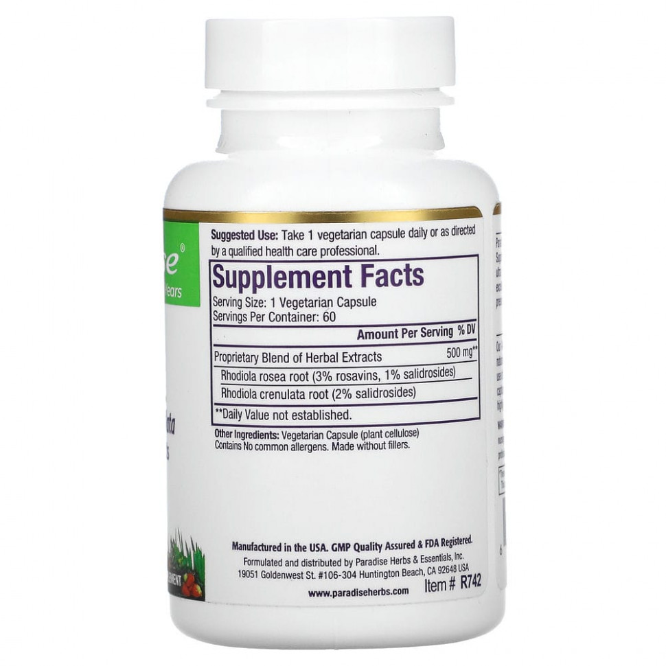 Paradise Herbs, родиола, 60 вегетарианских капсул [34045]