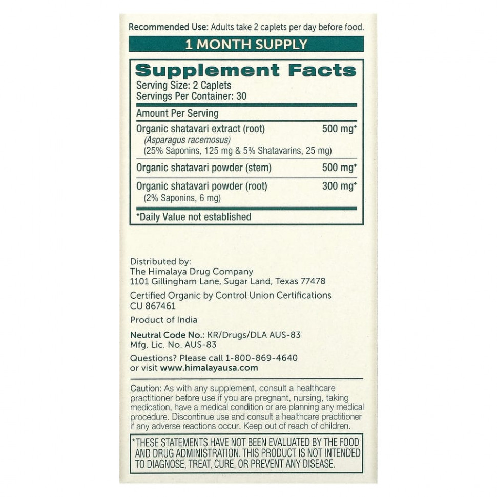 Himalaya, Шатавари, 60 капсуловидных таблеток