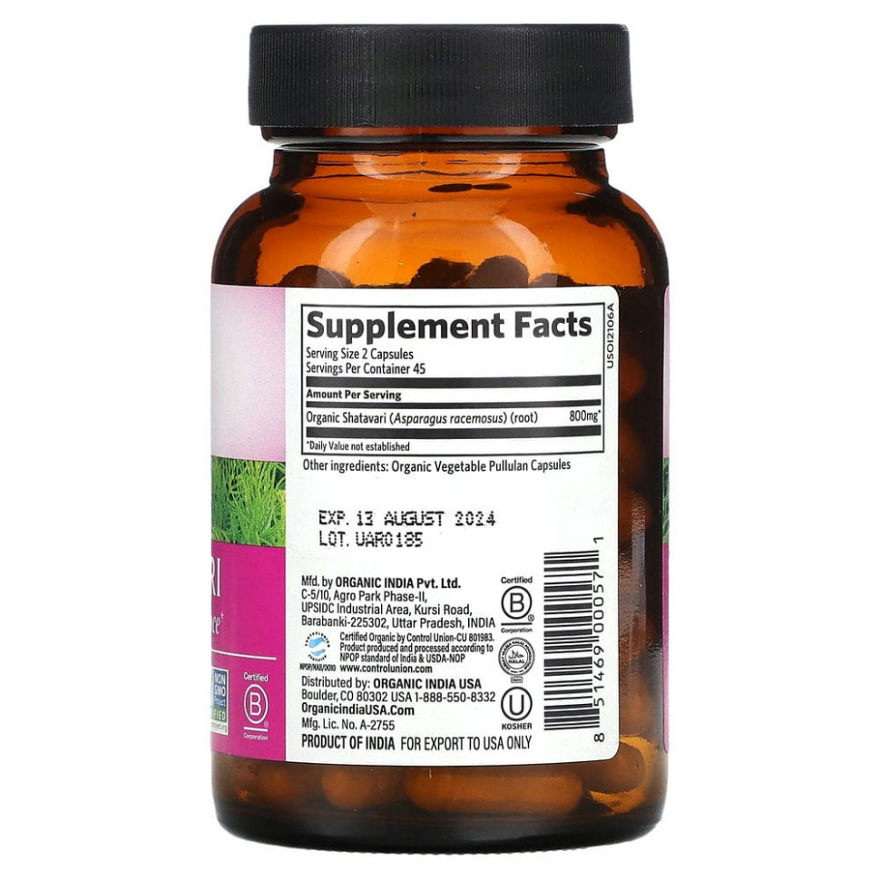 Organic India, шатавари, 90 вегетарианских капсул
