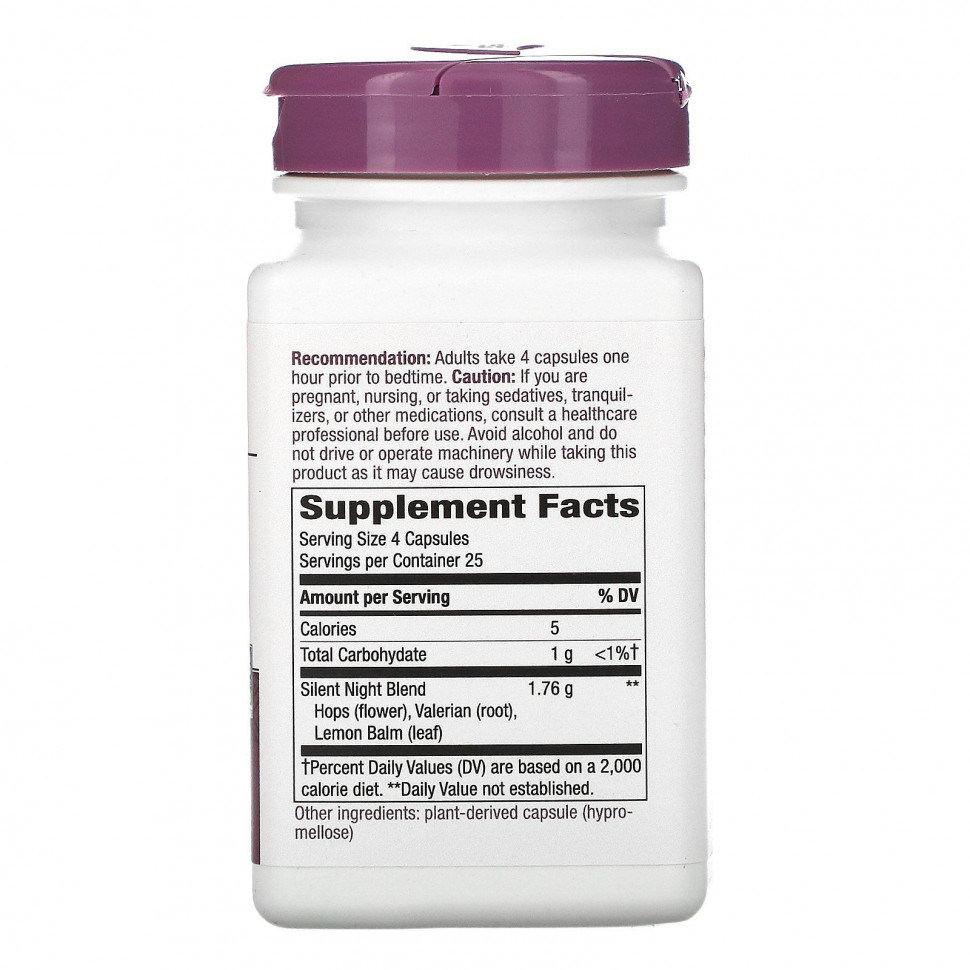 Nature's Way® Silent Night — это смесь хмеля, валерианы и мелиссы лекарственной, разработанная как традиционное средство для нормализации сна. Мы сотрудничаем с Non-GMO Project и TRU-ID®, чтобы гарантировать превосходное качество продукции.