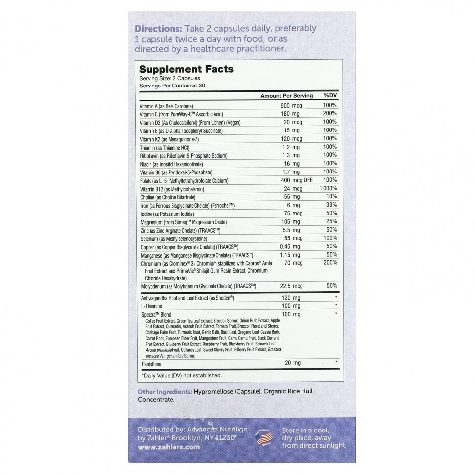 В дополнение к полноценной биоактивной мультинутриентной формуле Spectra ™, Multi Calm содержит ашвагандху Shoden®, клинически подтвержденный высококонцентрированный экстракт почитаемого аюрведического растения, и аминокислоту L-теанин. Эти тщательно отобранные и клинически подтвержденные активные ингредиенты поддерживают и способствуют:
