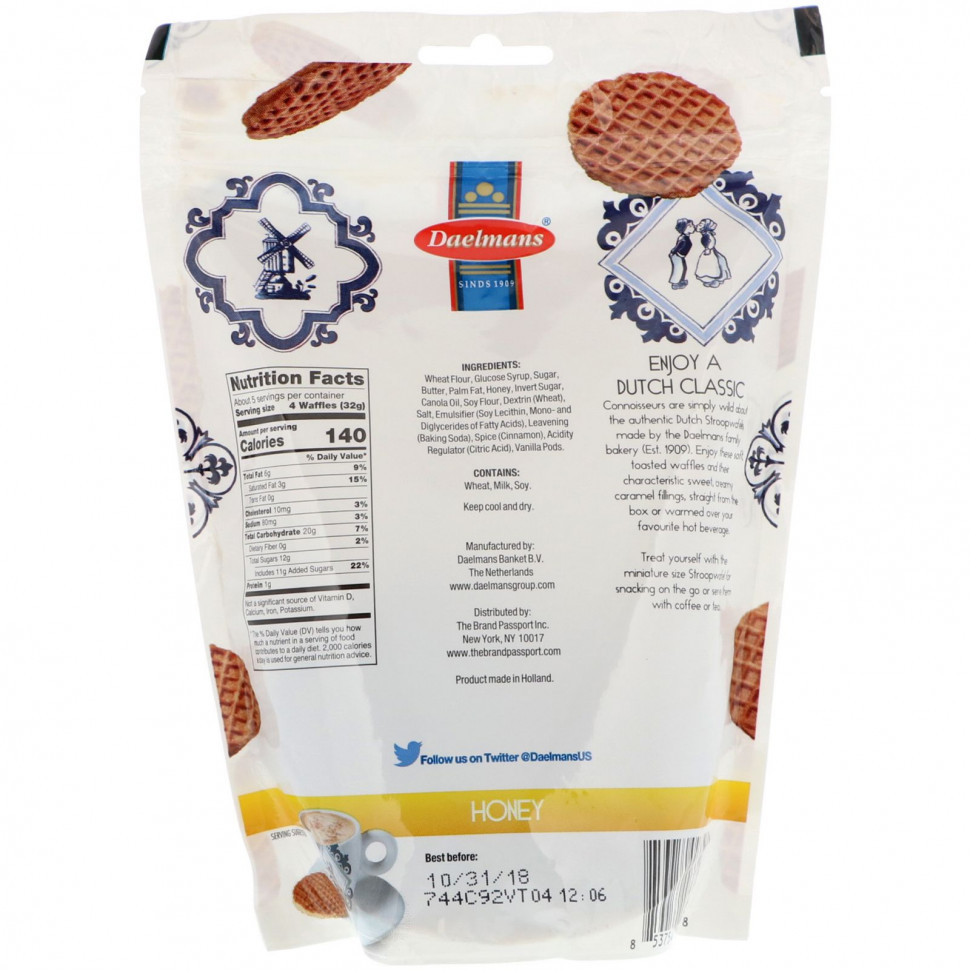 Daelmans, Мини-стропвафли, мед, 5,29 унций (150 г)