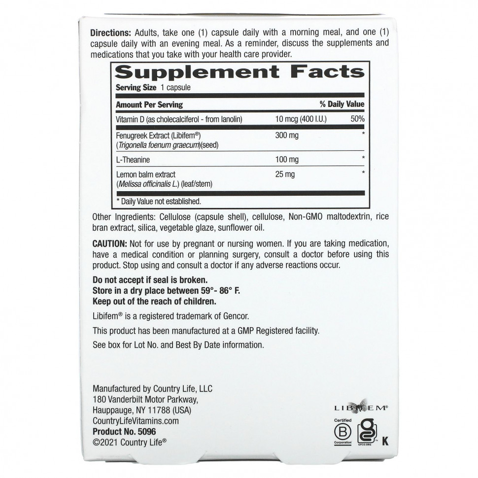 Здоровый гормональный фон критически важен для поддержания энергии, жизненных сил и бодрости. Libido Rescue ™ от Country Life включает в себя клинически протестированный ингредиент, экстракт семян пажитника Libifem®, для поддержки женского сексуального здоровья и возбуждения. Расслабьтесь и подпитайте свое желание!
