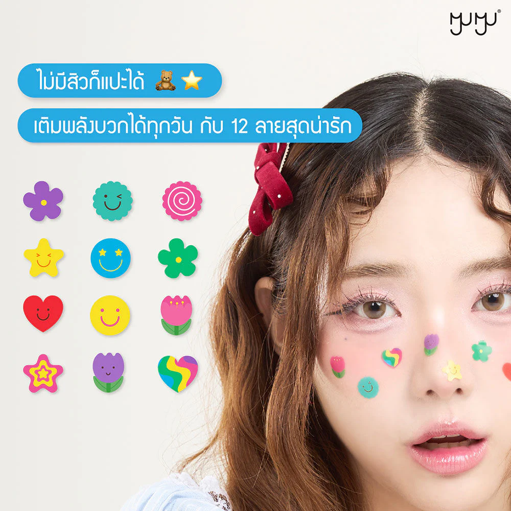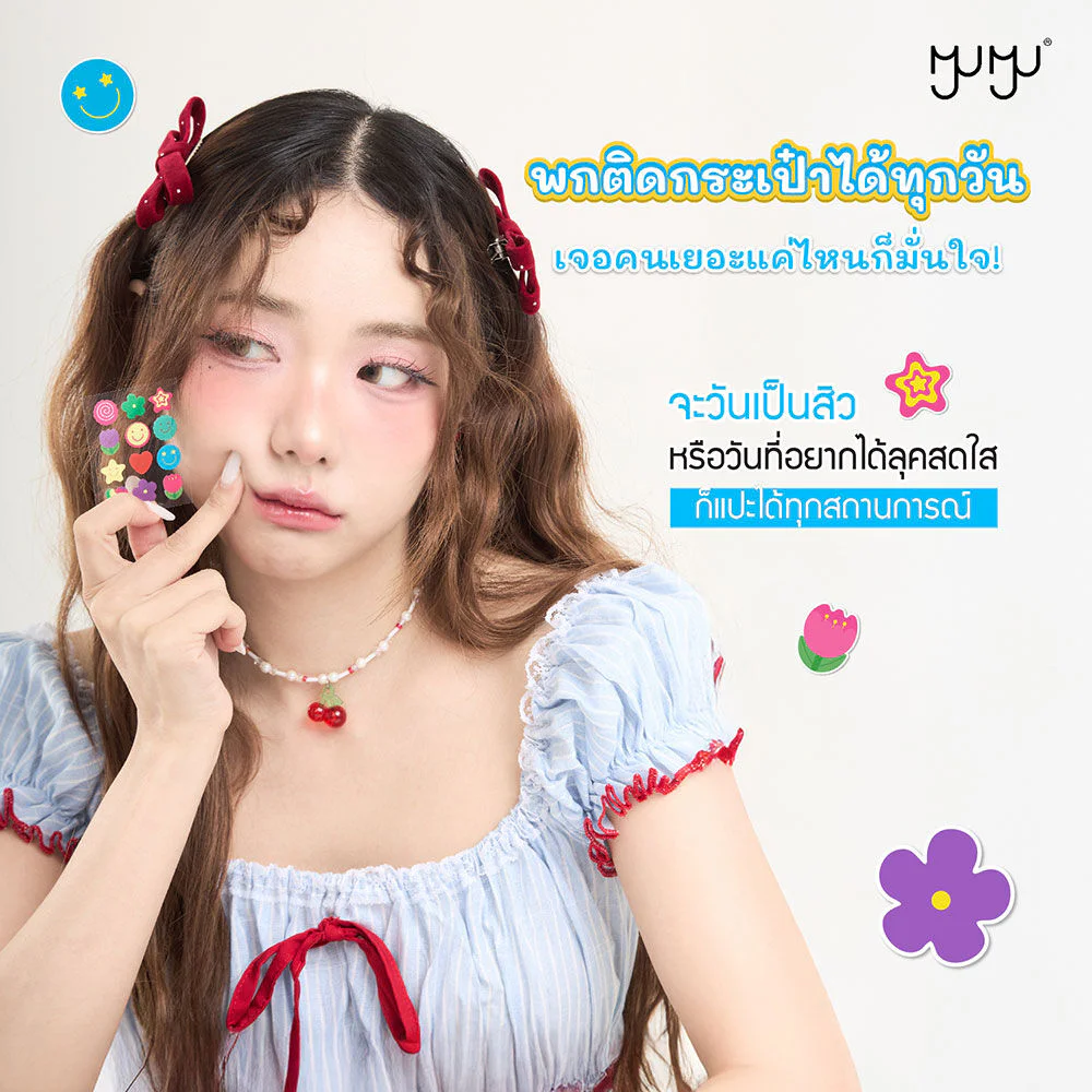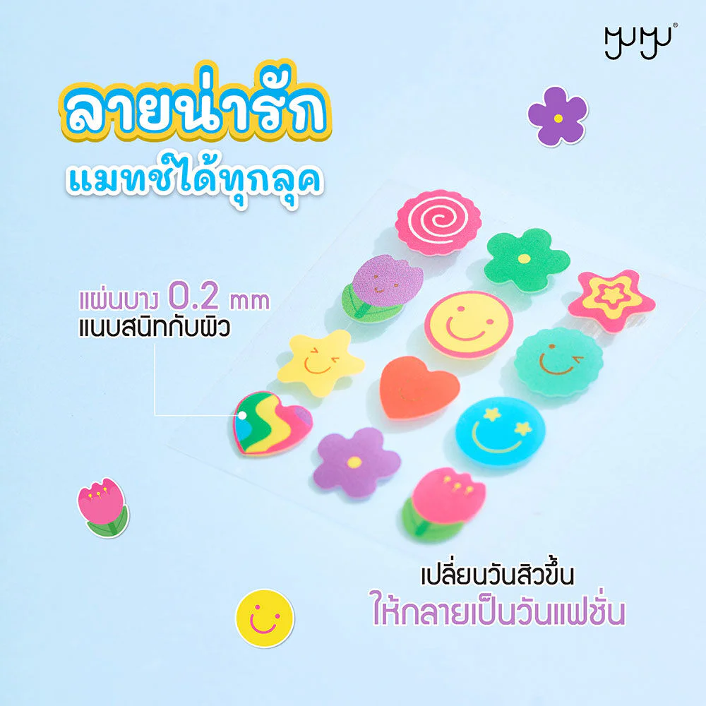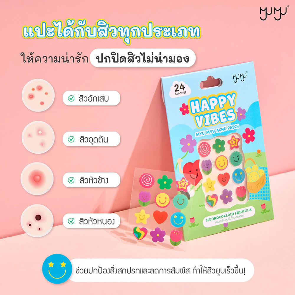 MYU-MYU Acne Patch 24 Dots Pure Hydrocolloid acne patches are thin, adhere closely, and stay firmly in place. They feature cute and vibrant designs, help absorb pus, protect acne from dirt, and gently revitalize the skin.