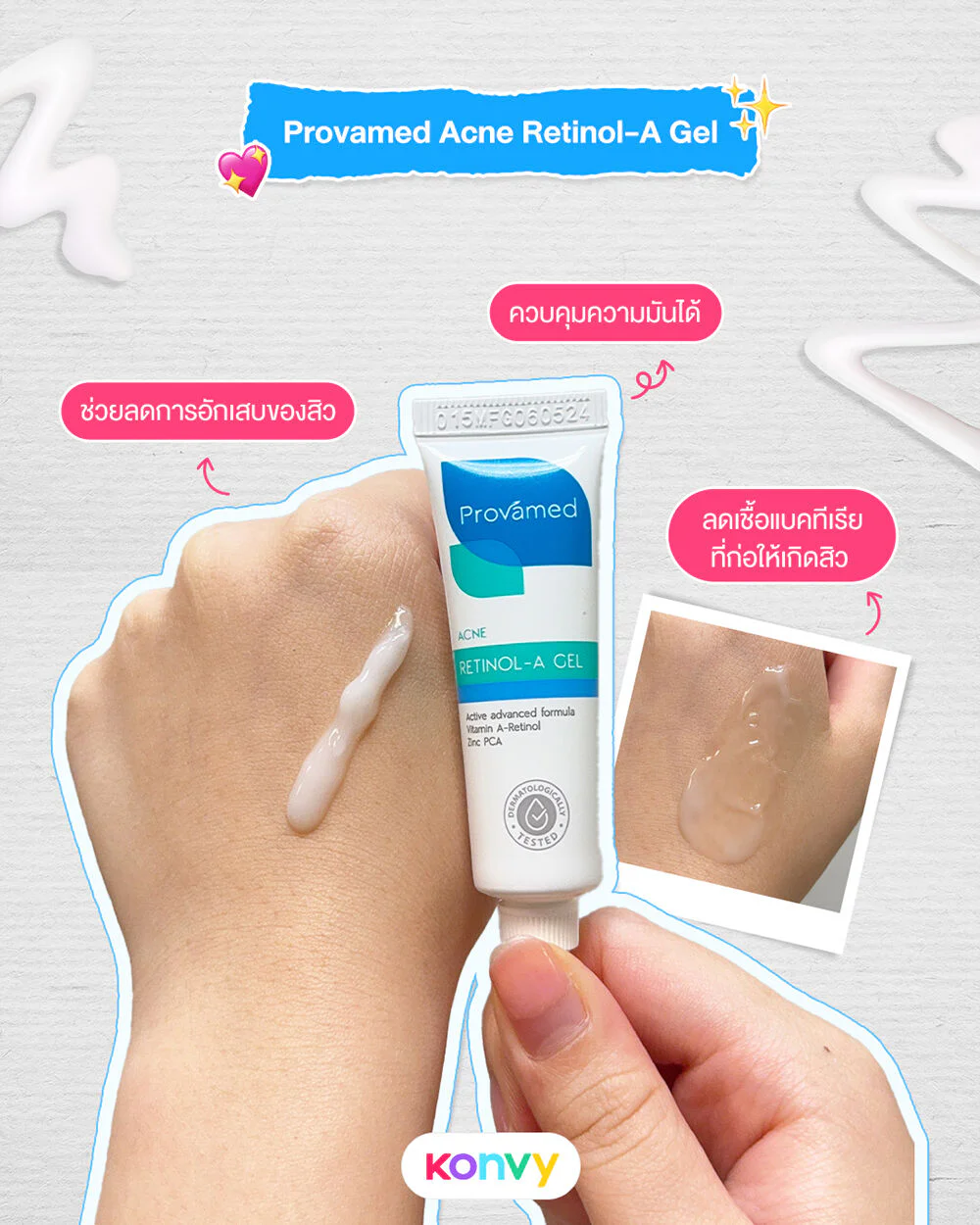 Подробное описание товара на сайте поставщика https://www.konvy.com/brand-team/provamed-acne-retinol-a-gel-10g-68424.html