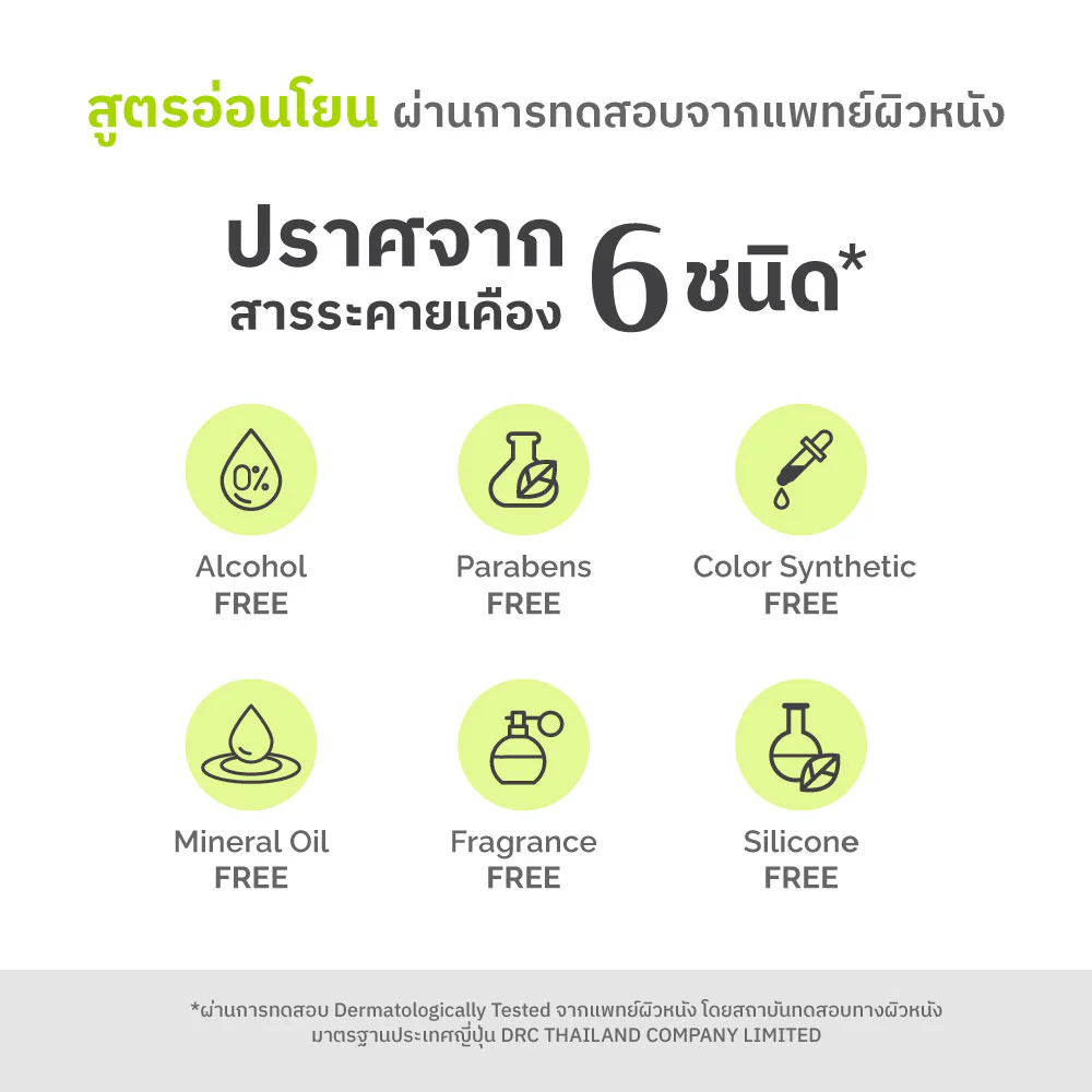 • Free from color, parabens, alcohol, fragrance, silicone and mineral oil.