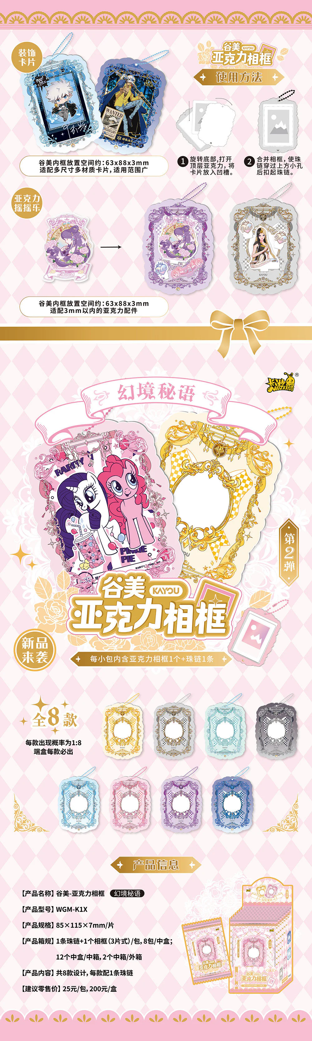 Kayou x Acrylic Frame #A2 1pc [Random] Authentic licensed acrylic frame random box, Fantasy Secret Series, designed in a luxurious vintage style. Used for storing collectible cards or art cards from various collections to make them stand out more. Made from high quality, transparent, strong acrylic material with a gold pattern design and 8 special colors for fans to choose to collect.