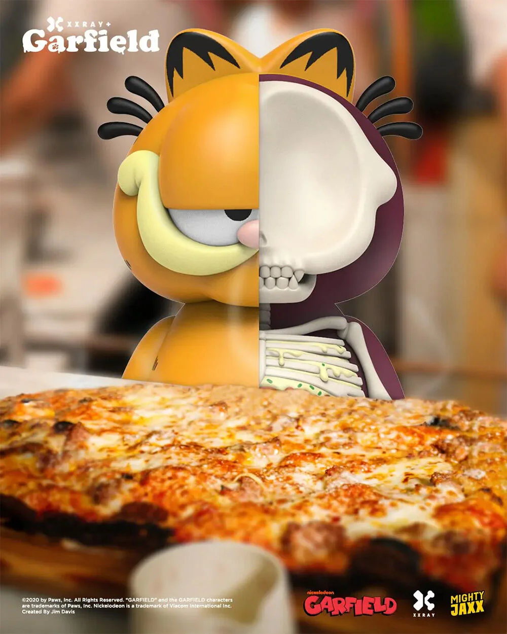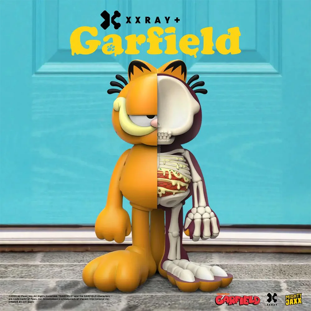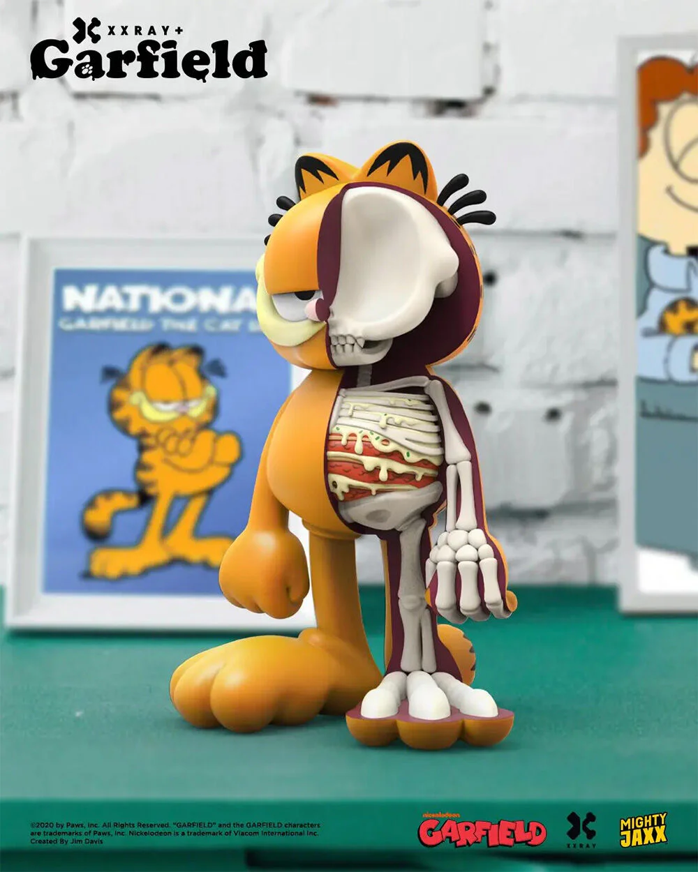 MTJ x Xxray Plus #Garfield Garfield figure with anatomical muscle design in the signature style of Jason Freeny comes with a special feature that has a stomach filled with "lasagna", the orange cat's favorite food instead.
