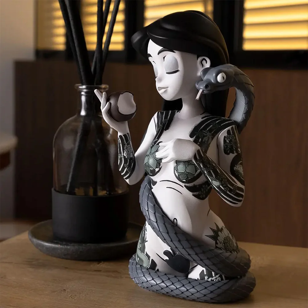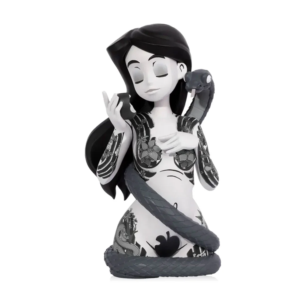 MTJ x Inked Stories #Eve Featuring JPK Eve's figure features tattoos all over her body, snakes coiling around her body, and a forbidden fruit in her hand. Artist JPK wanted to tell stories from the Garden of Eden.