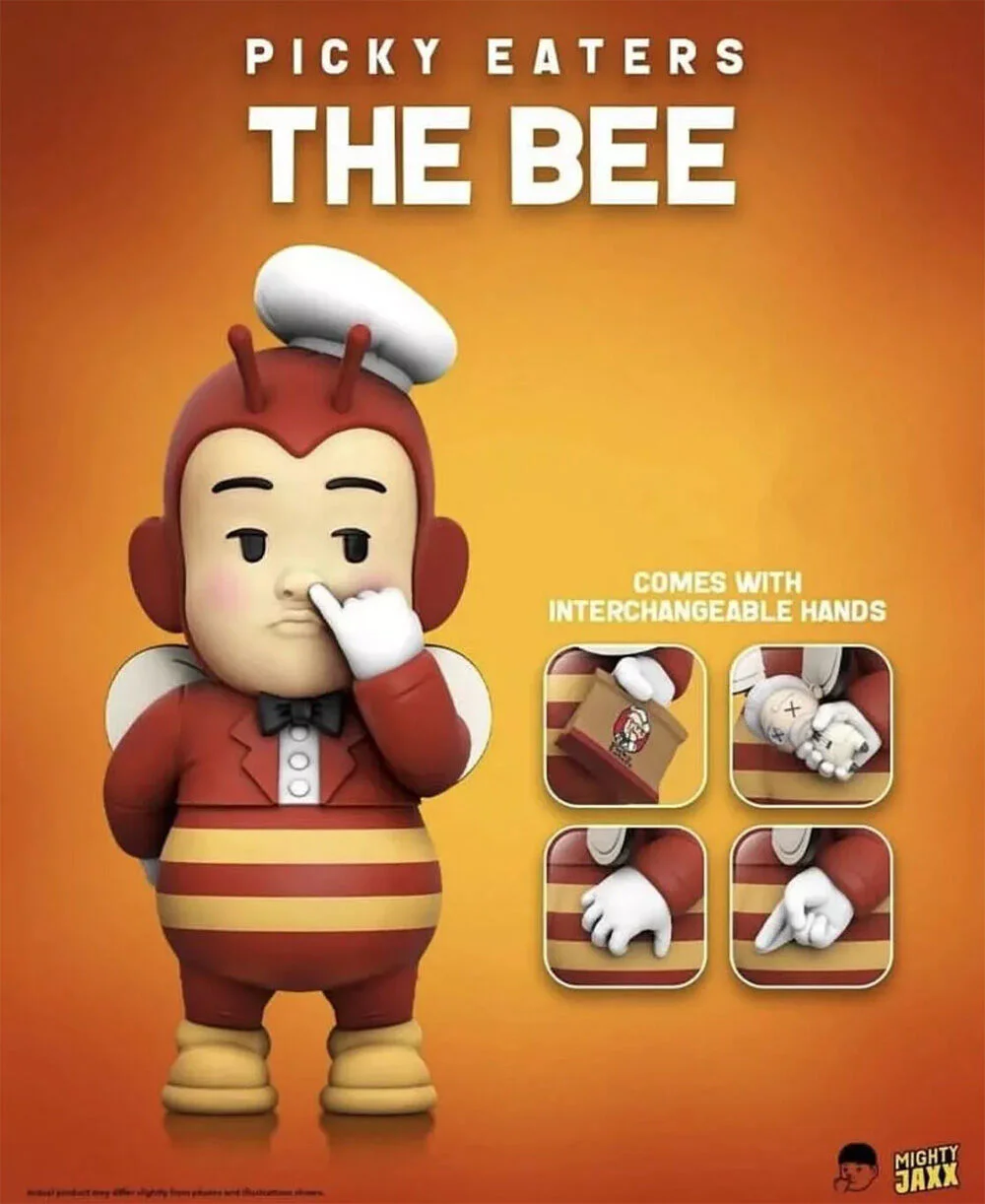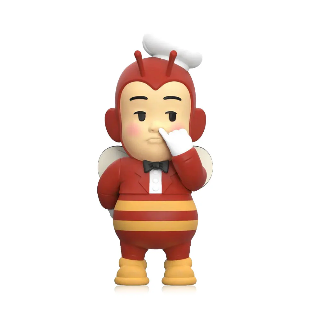 MTJ x Po Yun Wang Picky Eaters #The Bee The Bee figure, which is a take on Jollibee's mascot and transforms it into a concept of a picky eater and the iconic nose-picking character by artist Po Yun Wang.