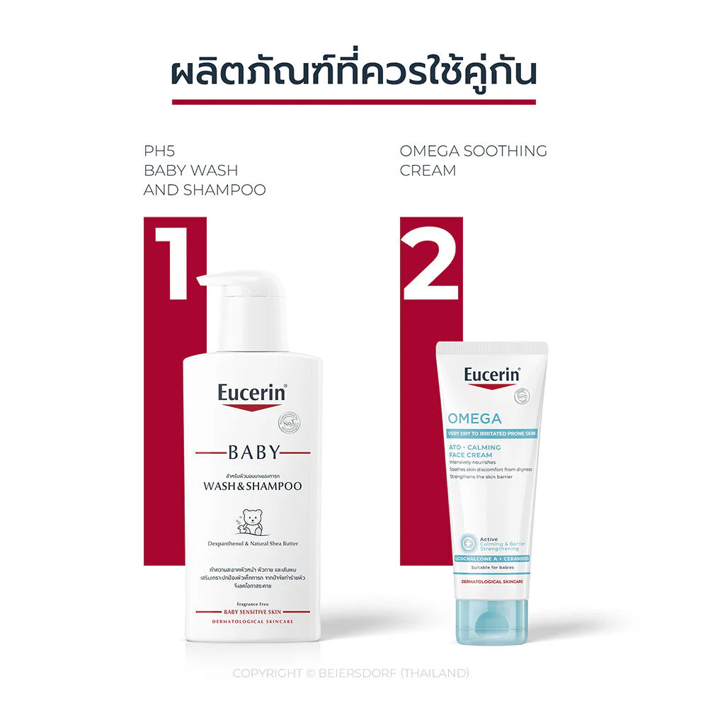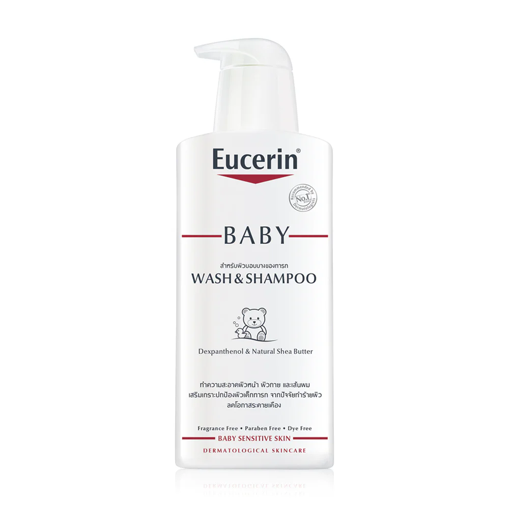 Eucerin Baby Wash & Shampoo 400ml This baby face, body, and hair cleanser cleanses baby's delicate skin from head to toe. It not only cleanses but also protects baby's delicate skin with a gentle yet effective formula, combining Dexpanthenol and Shea Butter for soft, healthy-looking skin and hair.