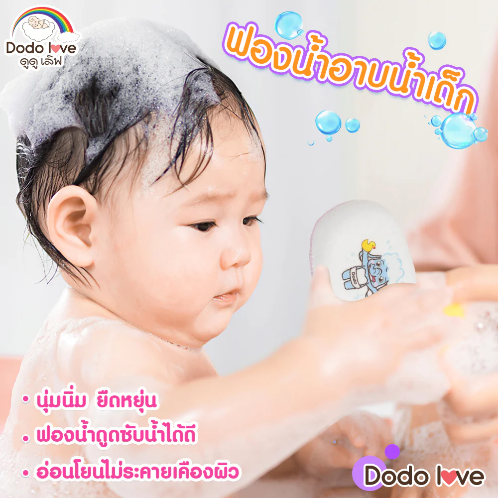 DODOLOVE Sponge For Baby 1pc #Pink Baby bath sponge, oval shape, soft sponge, does not irritate the skin or cause allergies, suitable for cleaning baby's skin, helps remove dirt thoroughly, gentle, soft and comfortable.