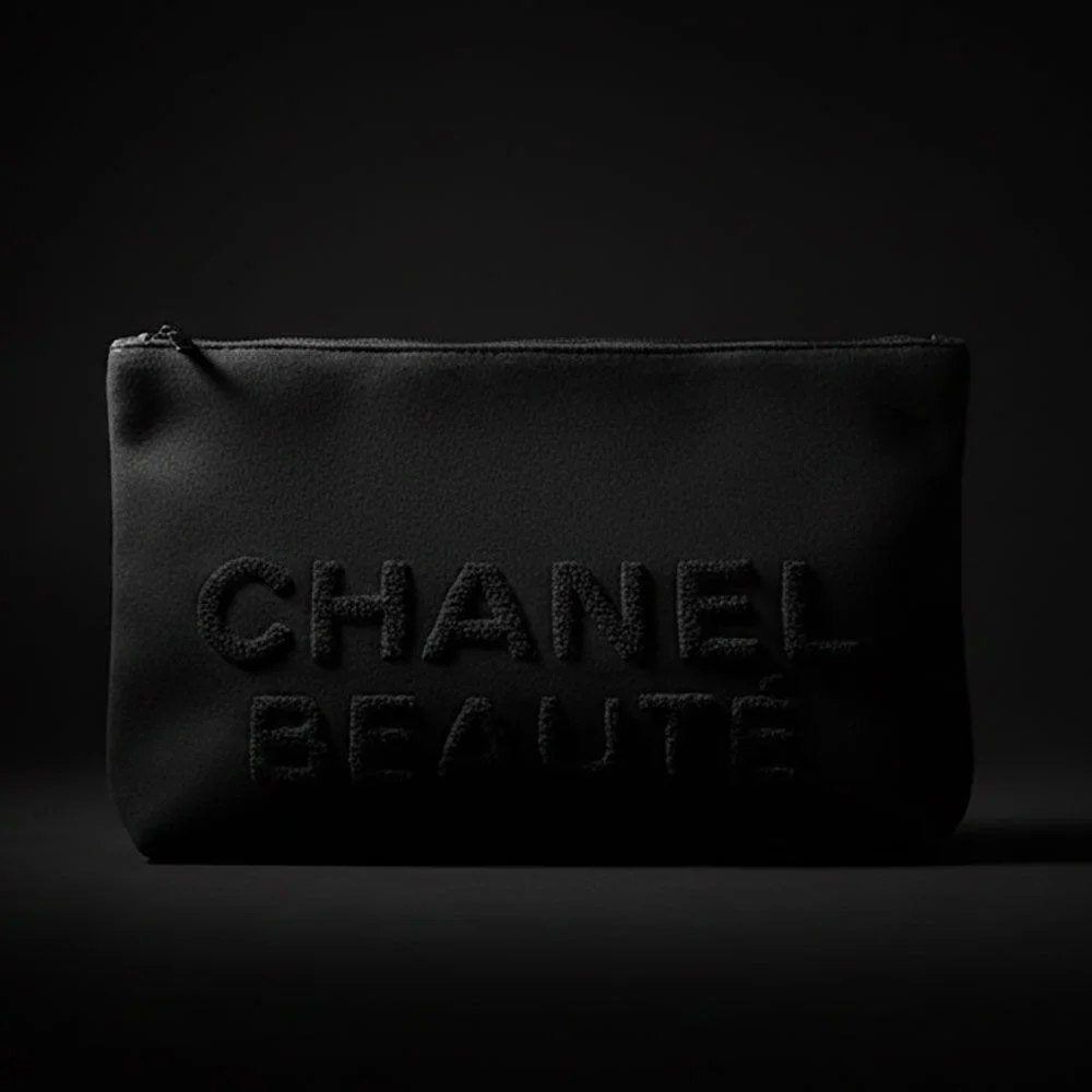 Chanel Beauty Black Pouch This black cosmetic bag is made from high-quality materials, meticulously crafted, durable, and features an expandable base for ample storage. It's convenient to carry and versatile for various uses.