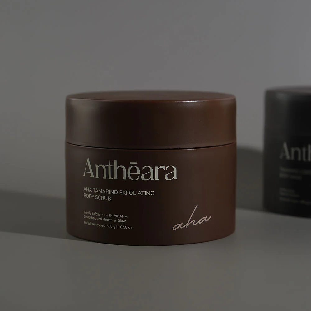 Antheara AHA Tamarind Exfoliating Body Scrub 300g AHA body scrub with a soft texture that won't irritate the skin. Formulated with AHA 2%, Glycolic Acid, and various herbs, it gently exfoliates, reduces dark spots, and evens out skin tone for a smooth, soft, and radiant complexion.