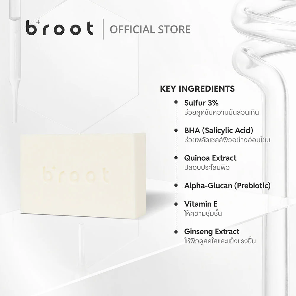 Broot Acne Eliminating Sulfur Soap 120g Sulfur body soap helps thoroughly cleanse the skin. It is effective in reducing excess oil, gently exfoliating the skin, and smoothing the skin for a brighter appearance.