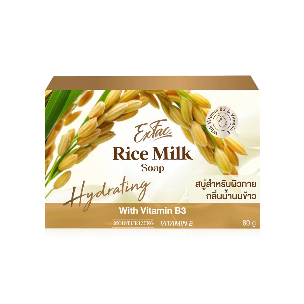 EXFAC Rice Milk Soap 80gThis body cleansing soap with a rice milk scent helps cleanse oil and dirt on the skin while providing nourishing benefits from Vitamin E derivatives to moisturize the skin. Combined with the power of Vitamin B3, it helps the skin look naturally radiant.