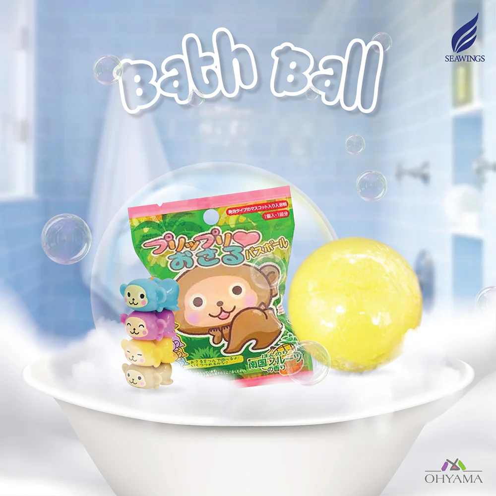 SEAWINGS Monkey Bath Ball 55g Bath Ball, a soap for bathing, fruity scent, helps clean dirt on the skin while soaking, helps nourish the skin to be soft and moist, with a cute little round-bottomed monkey randomly hiding in the bath ball