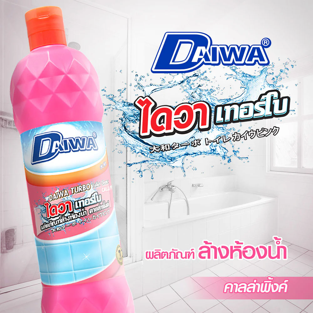 Daiwa Turbo Toilet Cleaner 900ml #Calla Pink Bathroom cleaning product, Calla Pink formula, helps remove long-standing stains that are difficult to remove, such as rust stains, limestone stains, limestone stains, soap scum, black stains in tile crevices and blood stains.