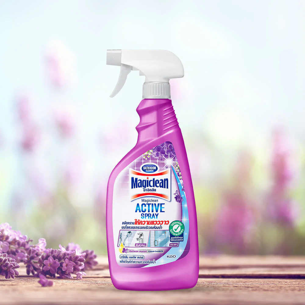 Magiclean Bathroom Spray 500ml #Lilac TenderBathroom cleaning spray product with Fresh Bouquet scent removes stains and reaches into corners and hard-to-reach areas. Cleans a wide area. Convenient to use with a special nozzle system that can be adjusted to 3 different types. Can remove soap stains, yellow stains, black stains. Can be used on floors, walls, sinks, toilet bowls, bathroom partitions. The scent is not pungent and does not irritate the nose.