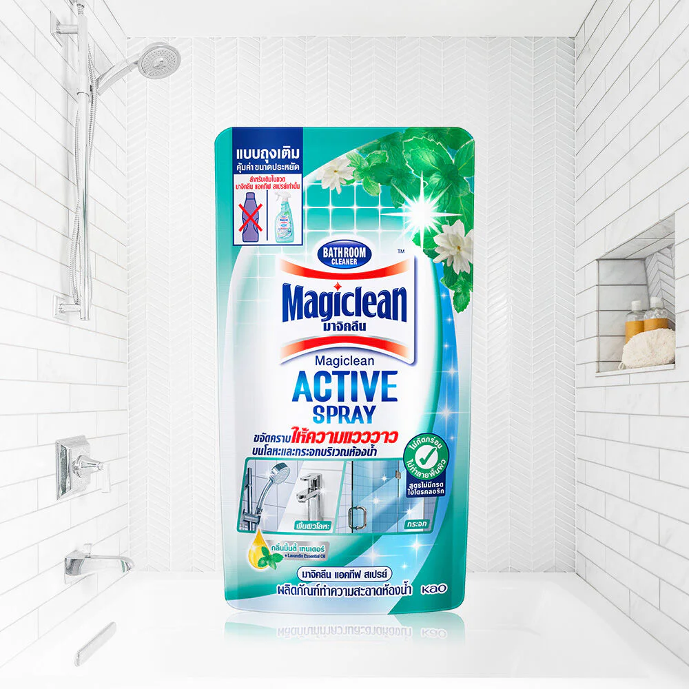 Magiclean Bathroom Spray Refill 400ml #Minty Tender Bathroom cleaning spray product  Refill type Minty Tender scent Helps remove dirt such as accumulated soap, water stains or dirt in the toilet bowl without corroding the surface and grooves of the tiles. The smell is not pungent and does not irritate the nose.