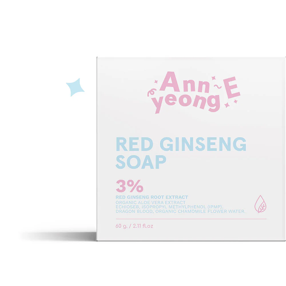 Annyeong E Red Ginseng Soap 60g This organic facial soap contains red ginseng, which deeply cleanses the skin, nourishes the skin, and brightens it. It gently reduces acne, freckles, and dark spots, and effectively reduces oiliness on the face. It balances the pH after washing the face, making it suitable for all skin types.