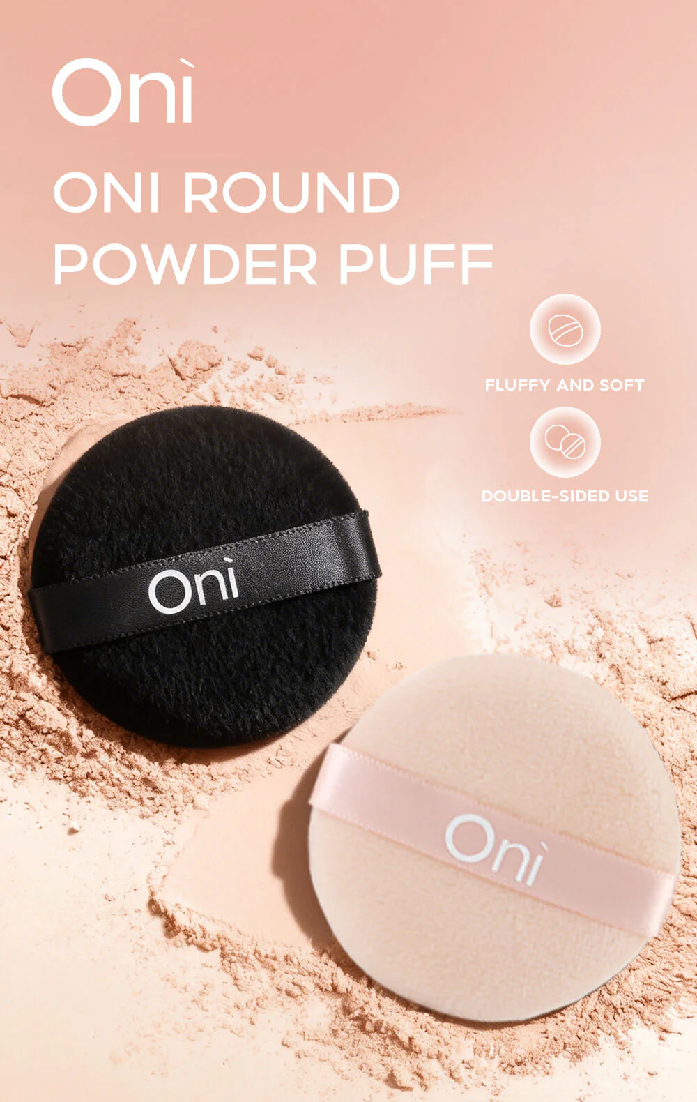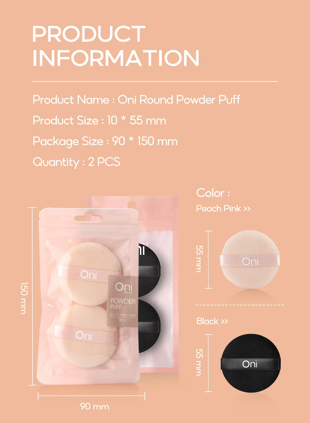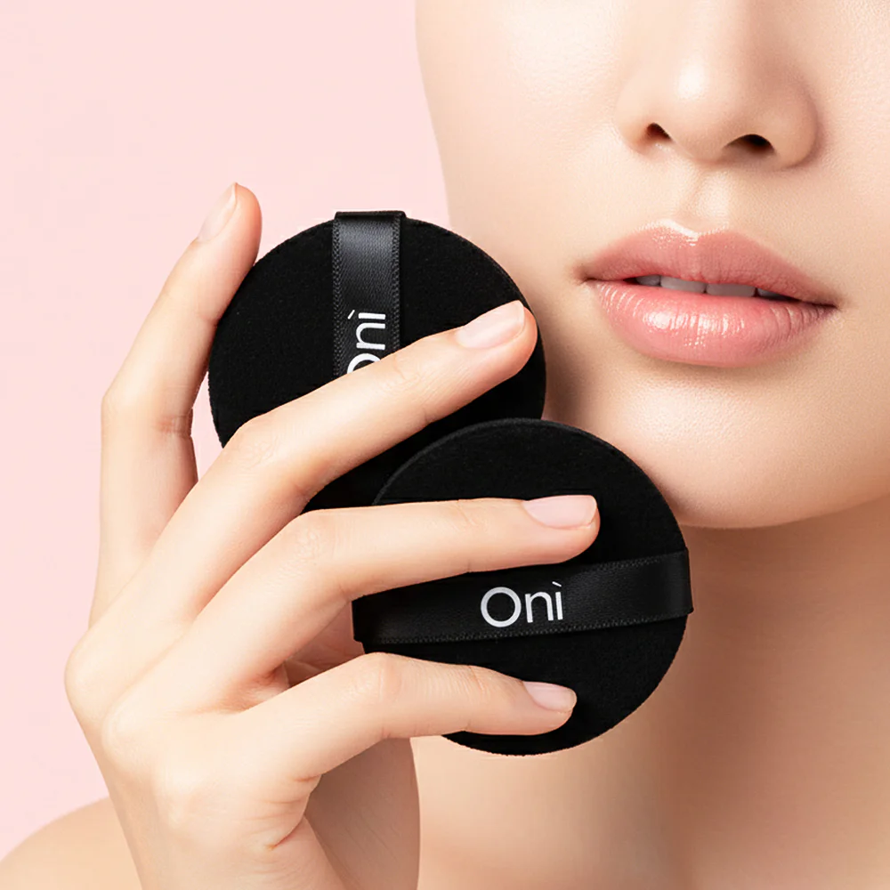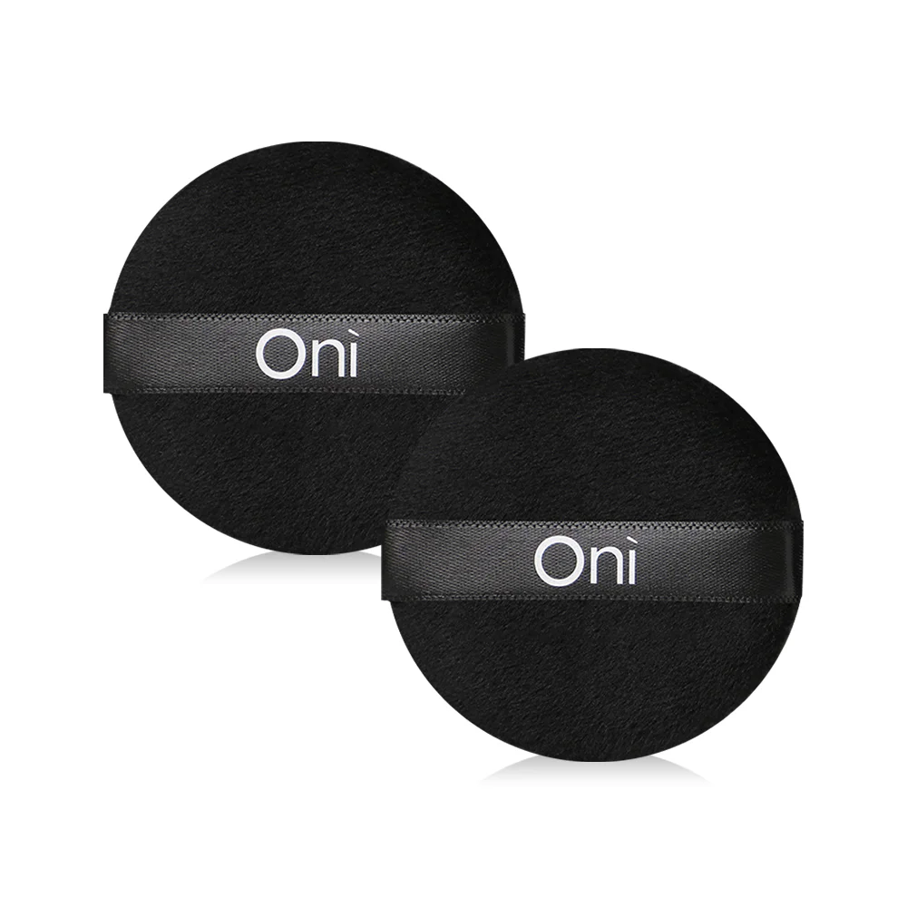 Oni Round Powder Puff 2pcs #Black Black makeup puff with a soft, smooth texture that won't irritate the skin. Designed for a smooth, natural powder application, it adheres evenly to the skin without leaving any residue. Can be used with both loose and pressed powder.