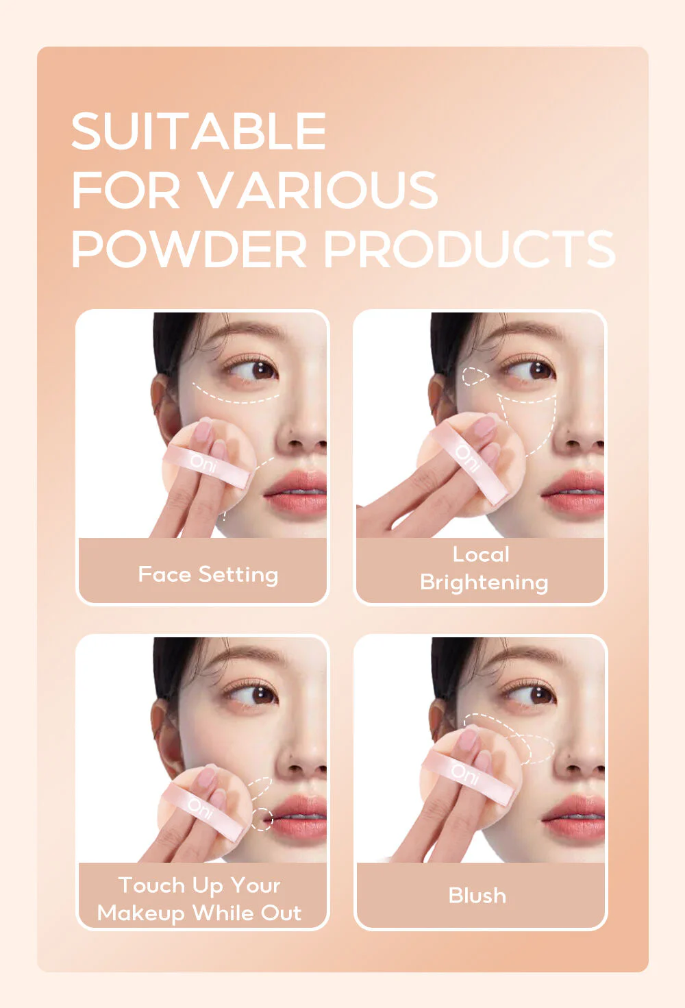 Spread the powder smoothly Makes skin look even and blotchy