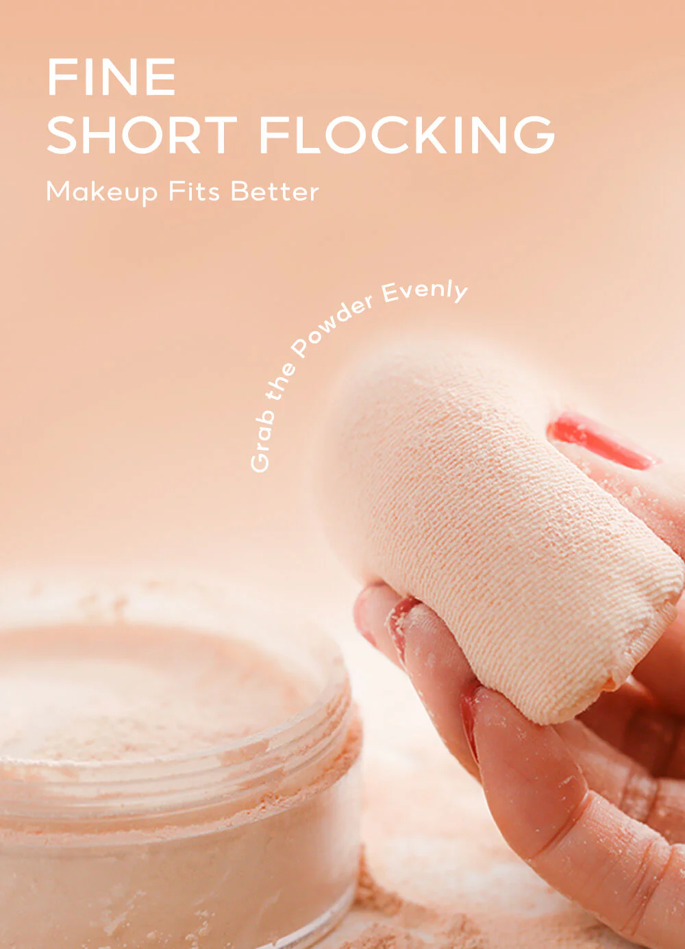 Made from densely packed short fibers Helps the powder stick to the puff well, not spreading or falling off easily.