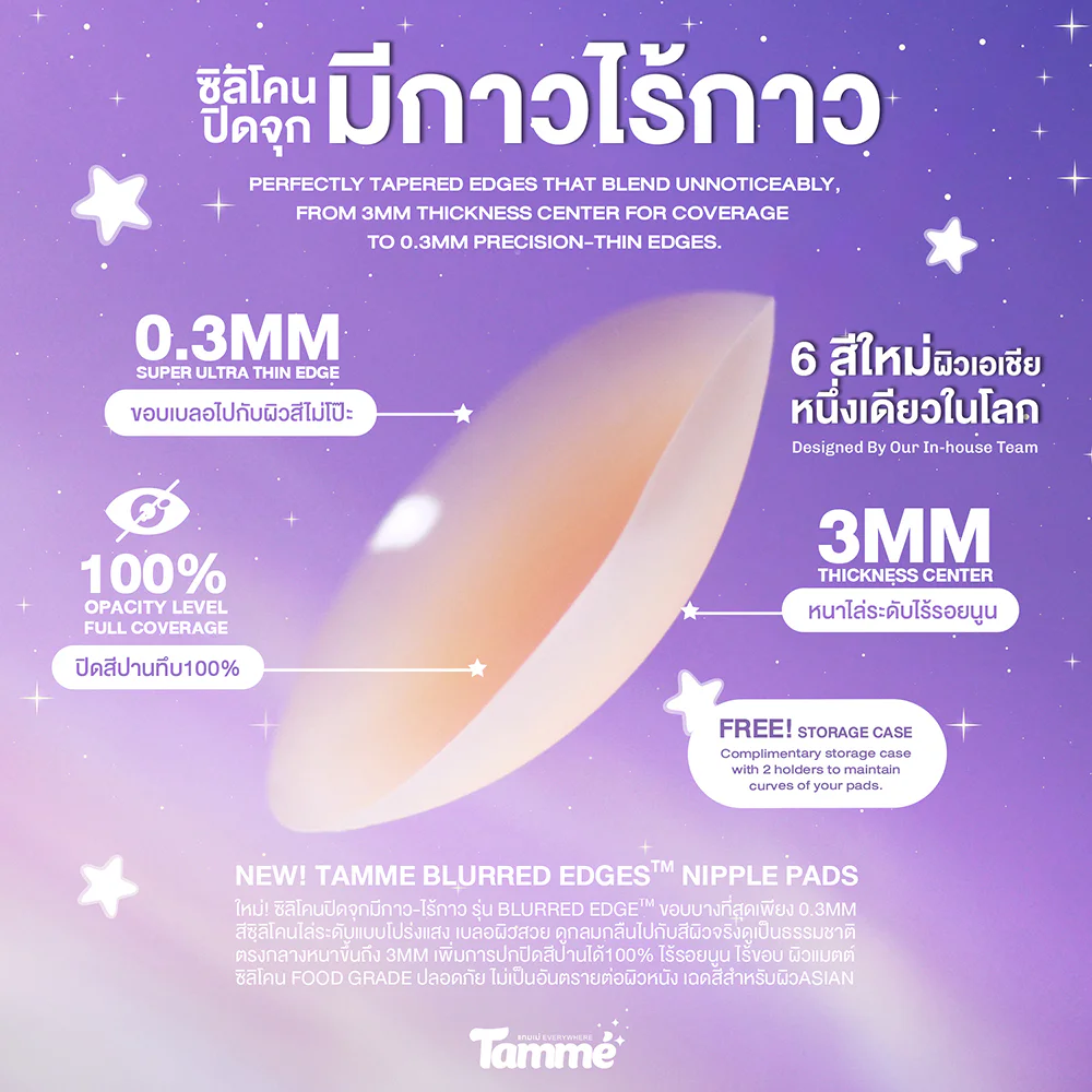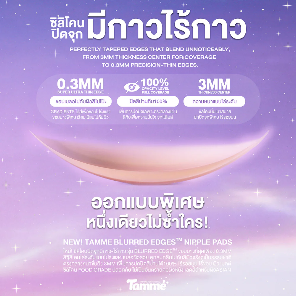TAMME Premium Adhesive Nipple Pads 1 Pair #Skin Silicone nipple cover with glue, Blurred Edge model, round shape, edges only 0.3 mm thin, transparent gradient edges, beautiful blurred skin, looks natural with real skin color, 3 mm thicker in the middle, increases nipple color coverage, matte silicone, no edges, long-lasting with Silica Gel, extra sticky, can be worn while exercising, waterproof, sweatproof, can be used for 60 times.
