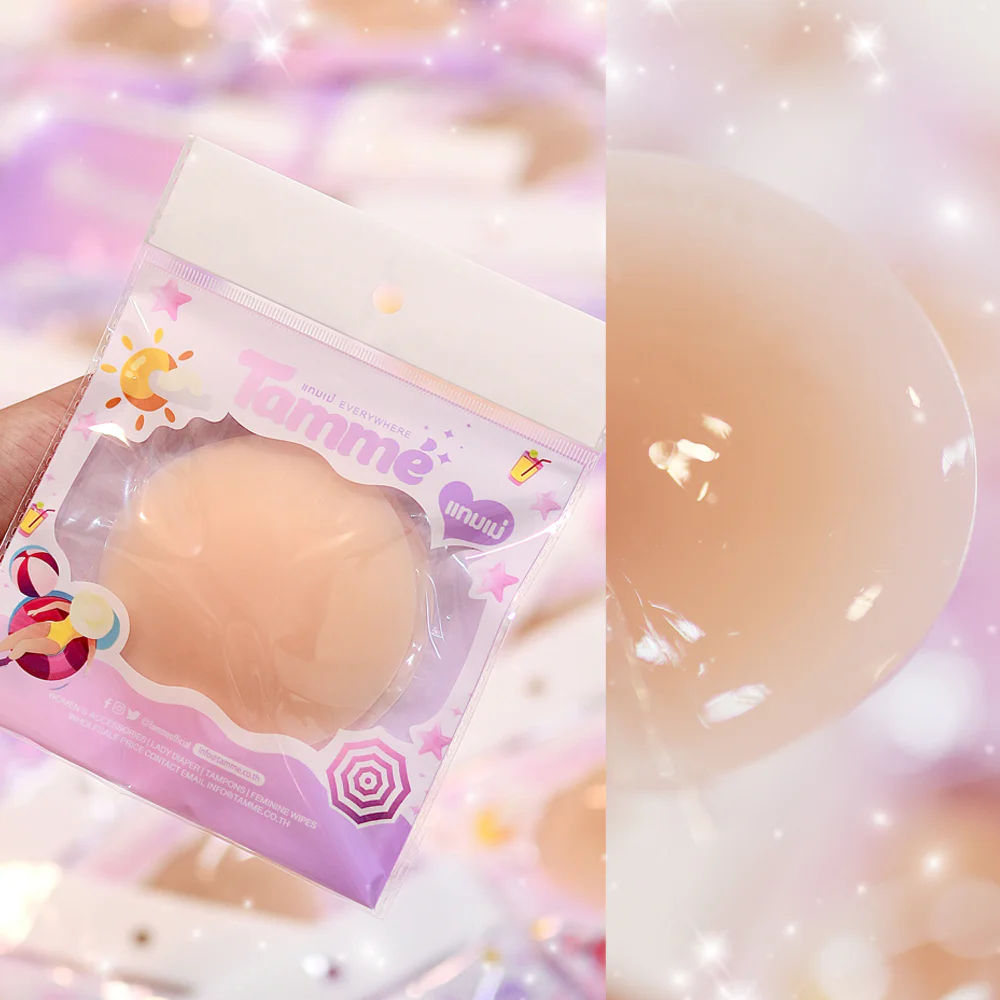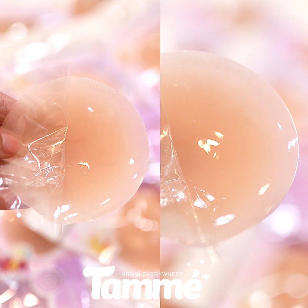 TAMME Refill Adhesive Nipple Pads 1 Pair #Milky Silicone nipple cover with glue, refill pack, Blurred Edge model, round shape, only 0.3 mm thin edge, transparent gradient edge, beautiful blurred skin, looks natural with real skin color, 3 mm thicker in the middle, increases nipple color coverage, matte silicone, no edges, long-lasting with Silica Gel, extra sticky, can be worn while exercising, waterproof, sweatproof, can be used for 60 times.