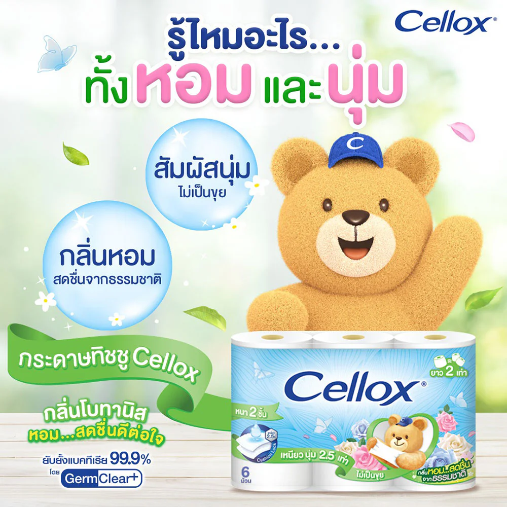 Cellox Purify Botanist 6 RollsNaturally fresh scent with quality tissue paper.With a fresh natural scent, good for hygiene.Really clean, too. Technology GermClear+ Reduce the accumulation of bacteria 99.9% With a gentle touch on the skin
