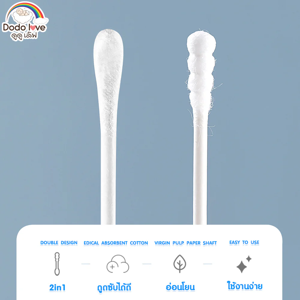 DODOLOVE Mini Cotton Bud 200pcs Small cotton swabs for ear cleaning. 1 box contains 200 swabs. Used for cleaning hard-to-reach spaces. Free from fluorescent substances.