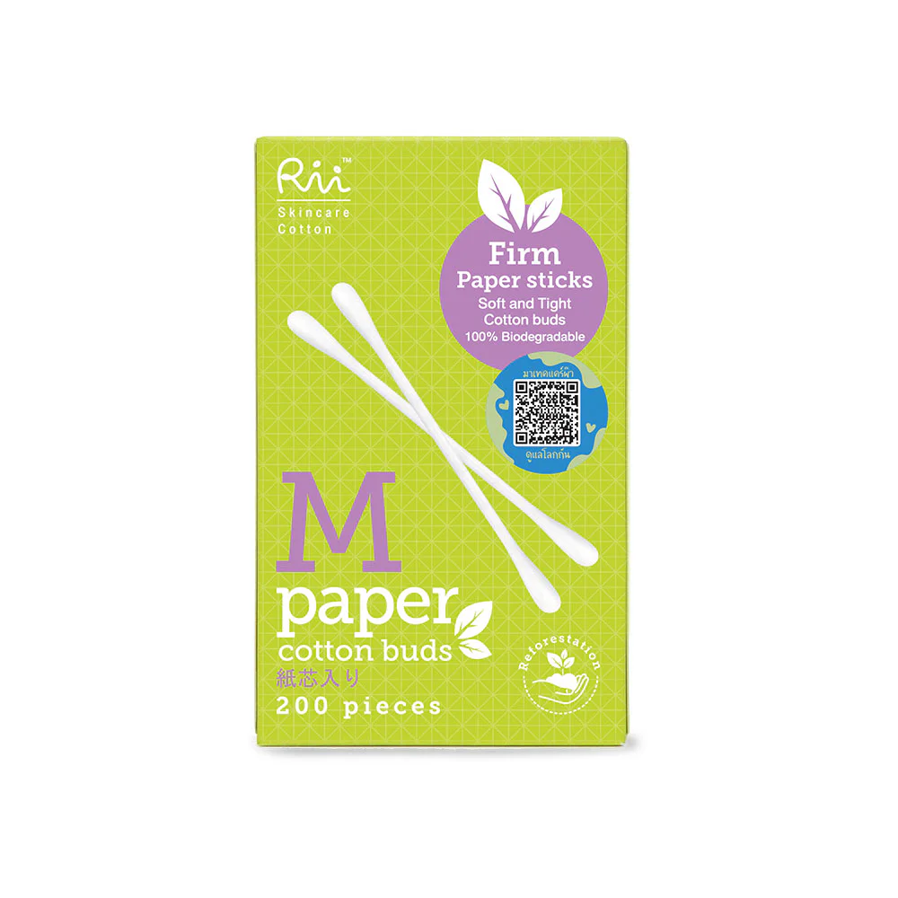 Rii M Paper Cotton Buds "Firm stem, firm head, comfortable in the hand, perfect eye makeup, paper stem from Japan" paper cotton swab Made from natural cotton fibers, the cotton head is soft, firm, and absorbs well. Made from cardboard stems, not easily bent, safe and comfortable to hold, suitable for cleaning ears. Wipe off makeup on the eyelids and other hard-to-reach areas. Cotton swabs and paper packaging Can be biodegraded environmentally friendly