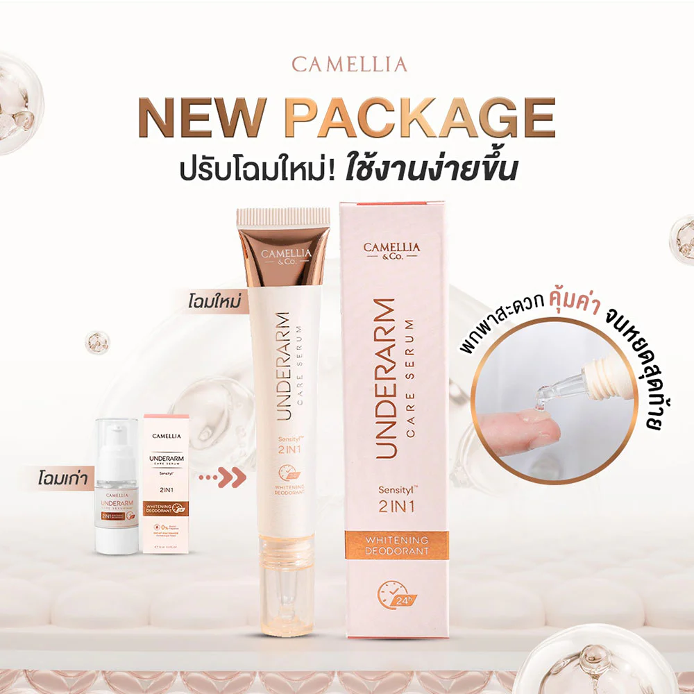 CAMELLIA Underarm Care Serum 15ml Underarm skin care serum with Sensityl innovation and 7 other types, helps prevent body odor for a long time, reduces sweat and chicken skin, reveals smooth skin, no yellow stains.