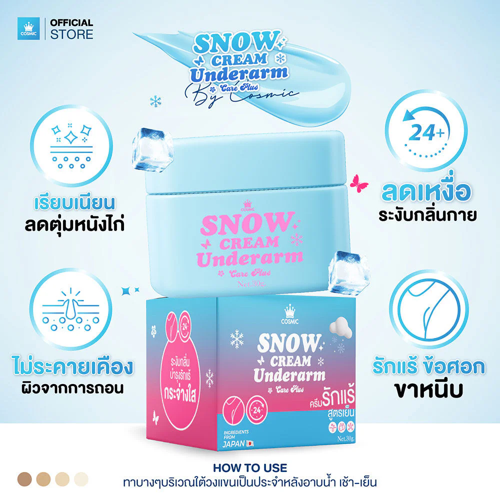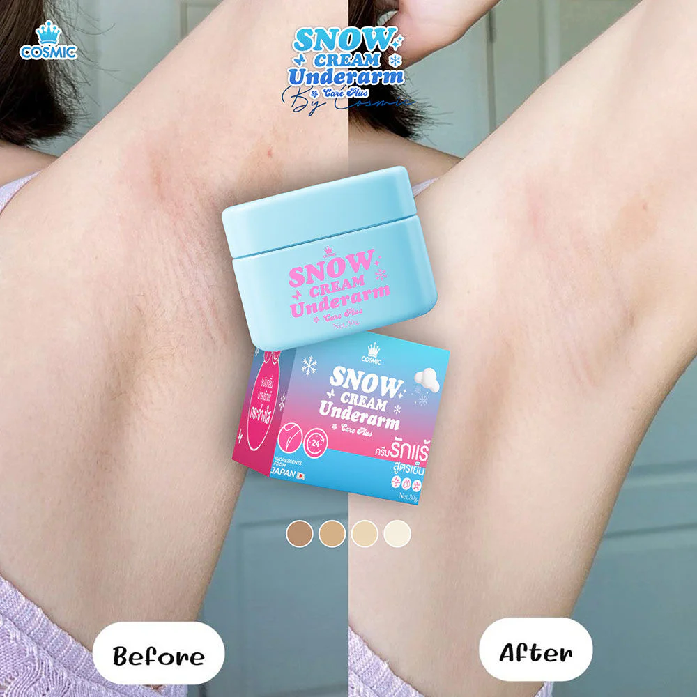 COSMIC Snow Cream Underarm Care Plus 30g This cooling underarm cream contains natural extracts for special skin care. It reduces roughness and dullness, while providing long-lasting odor control and sweat reduction, revealing smoother, brighter, and naturally radiant underarms.