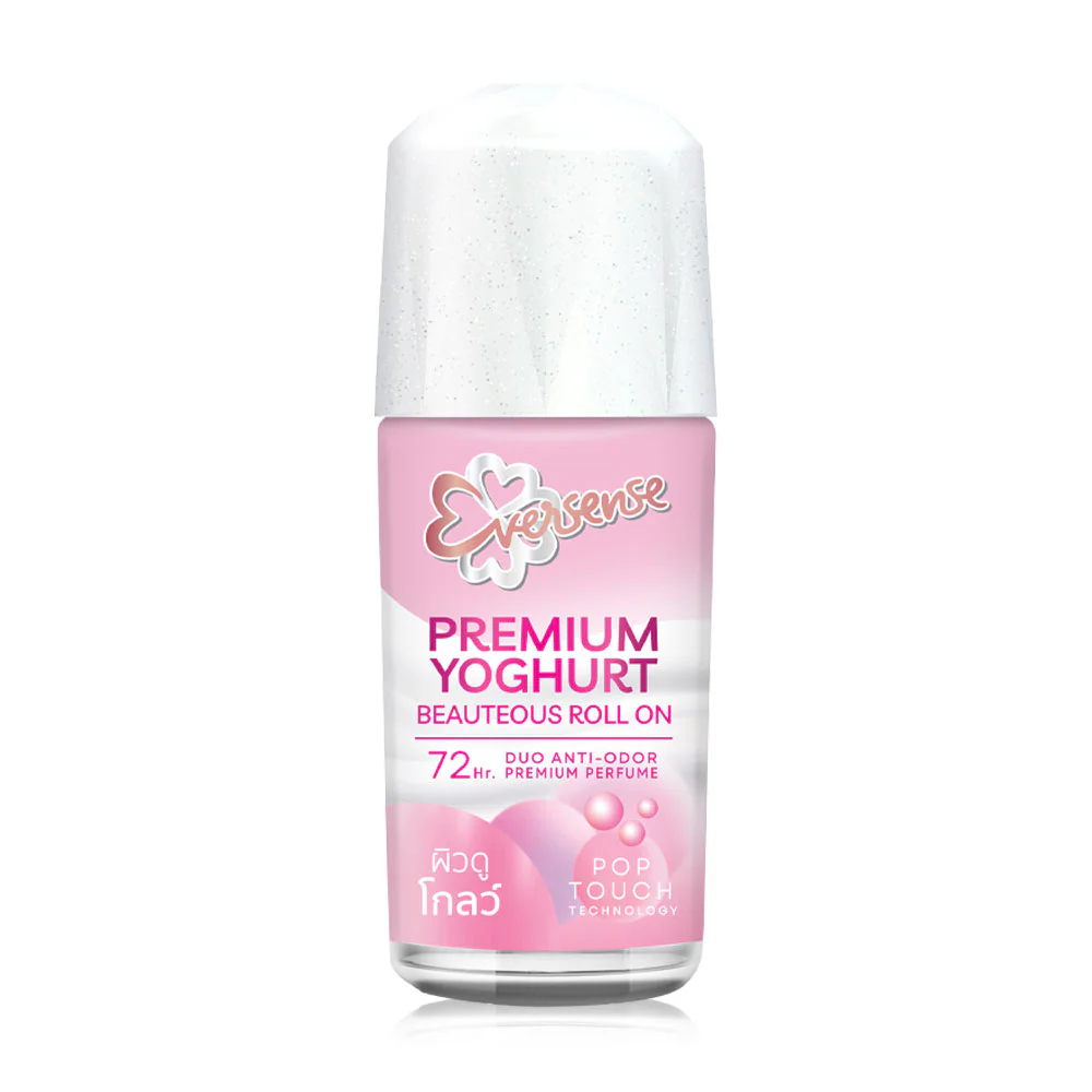Eversense Premium Yoghurt Beauteous Roll On 40ml Roll-on deodorant with PHA from yogurt helps exfoliate and nourish the underarms to be smooth. With POP Touch Tech technology, it helps spread a long-lasting fragrance, making the underarm skin look healthy and confident all day long.