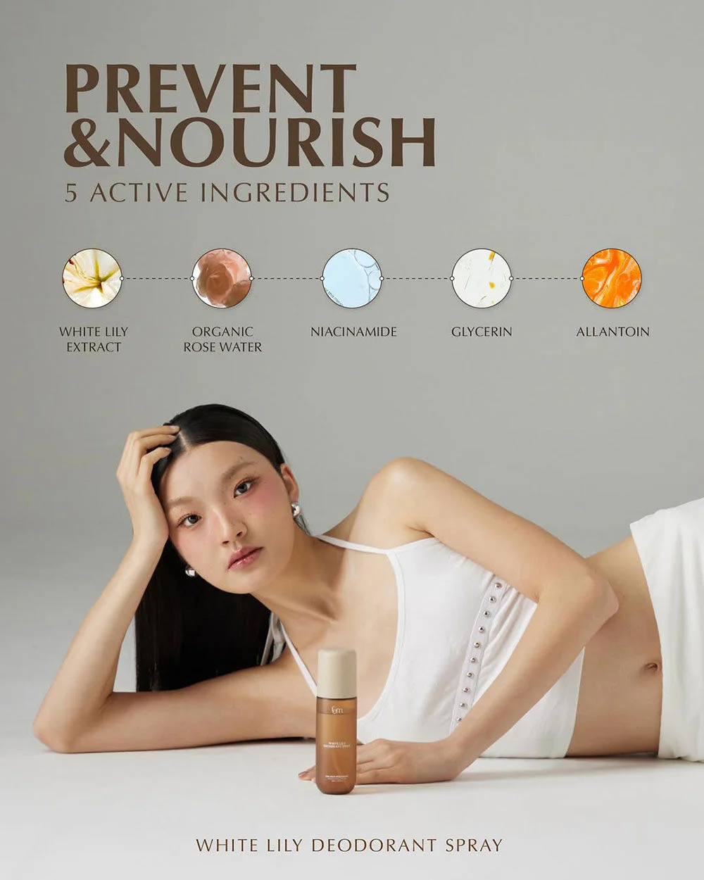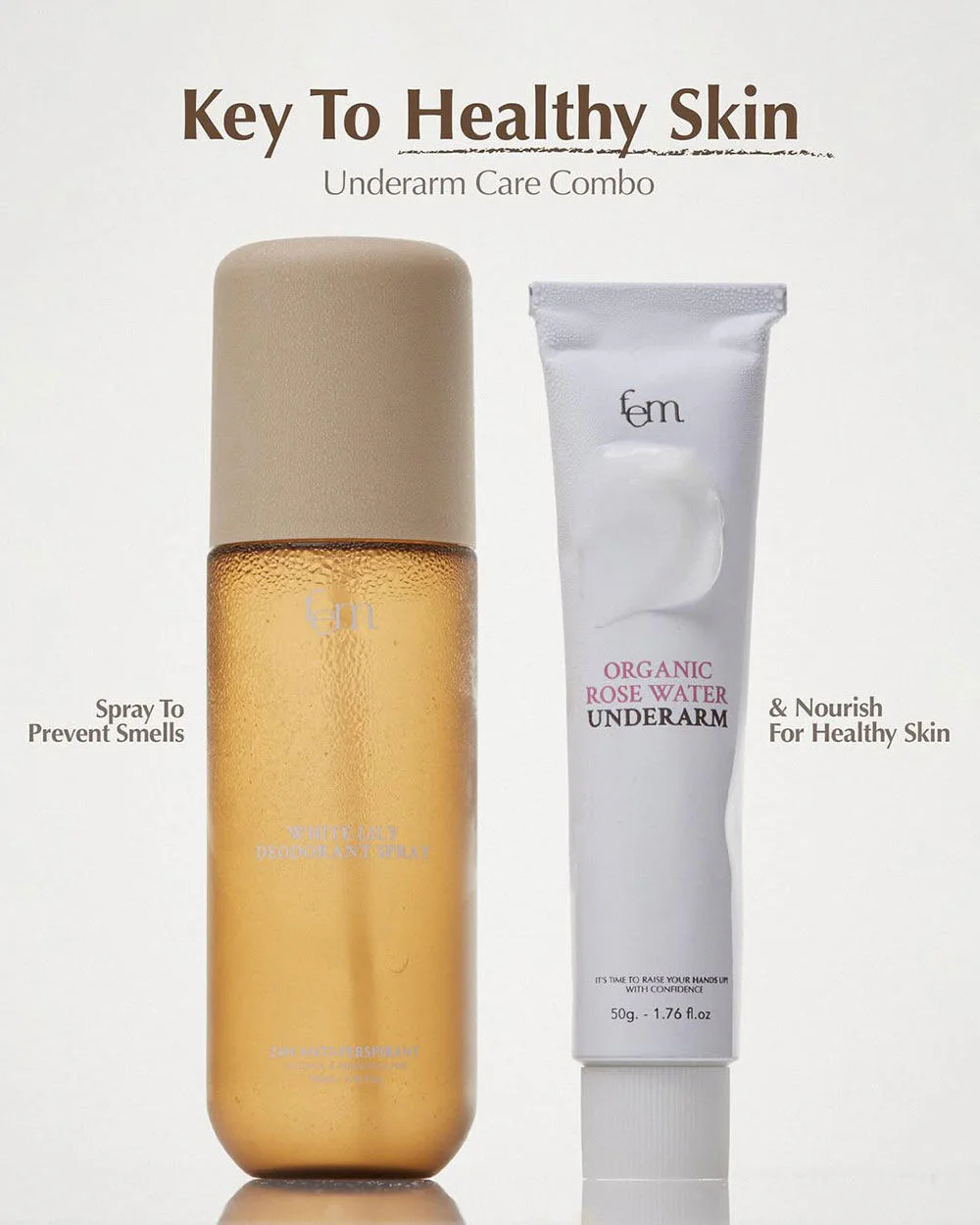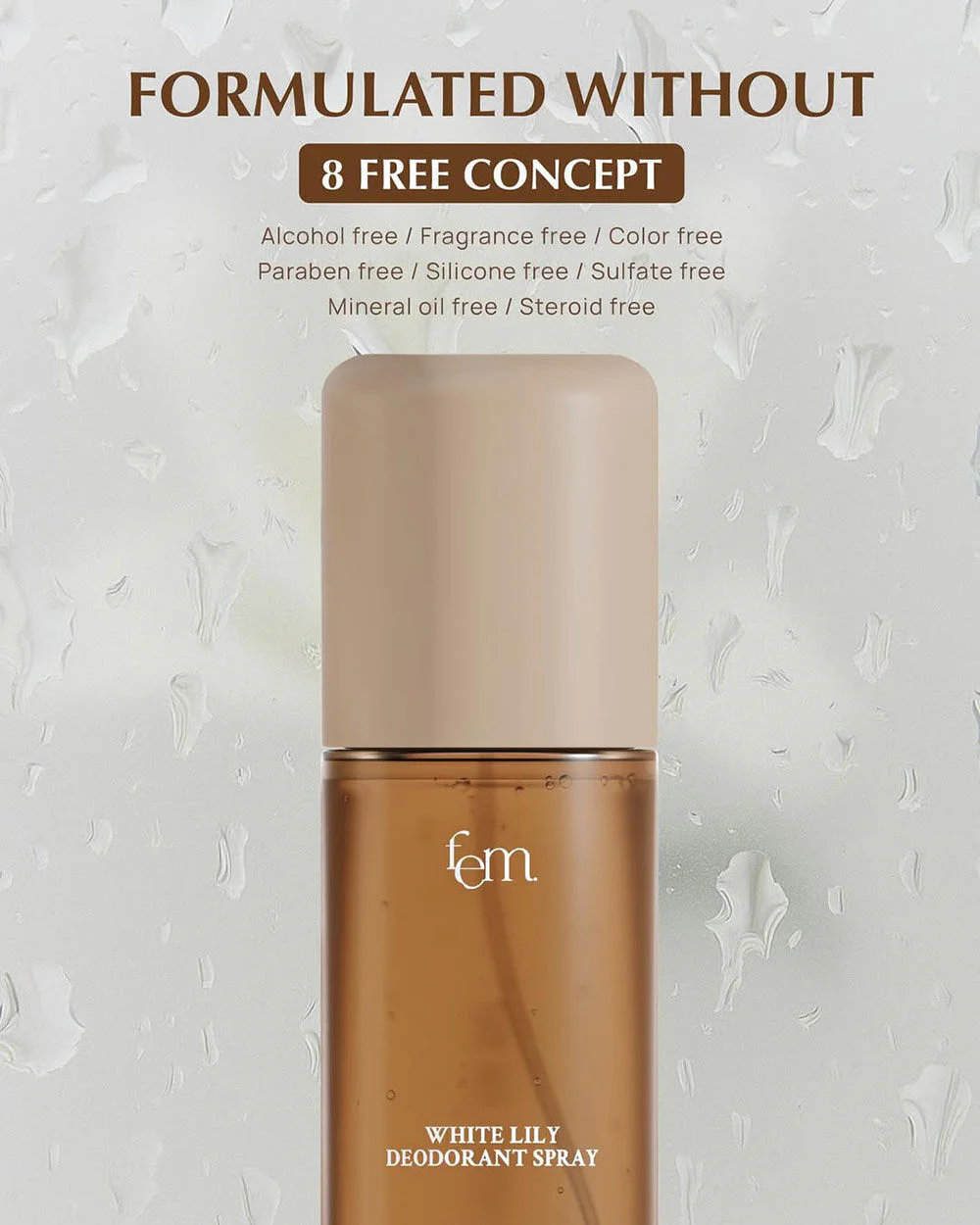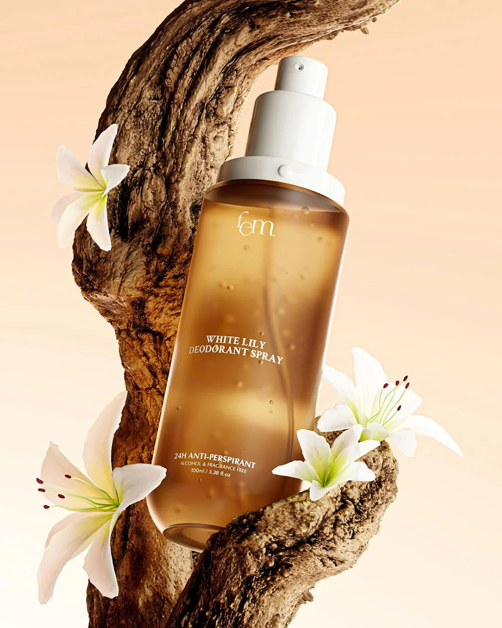 FEM White Lily Deodorant Spray 100ml Reveal clear, smooth underarm skin with confidence with this deodorant spray that combines the power of White Lily, Organic Rose Water, and Niacinamide to reduce dullness, add moisture, and protect against body odor all day long.