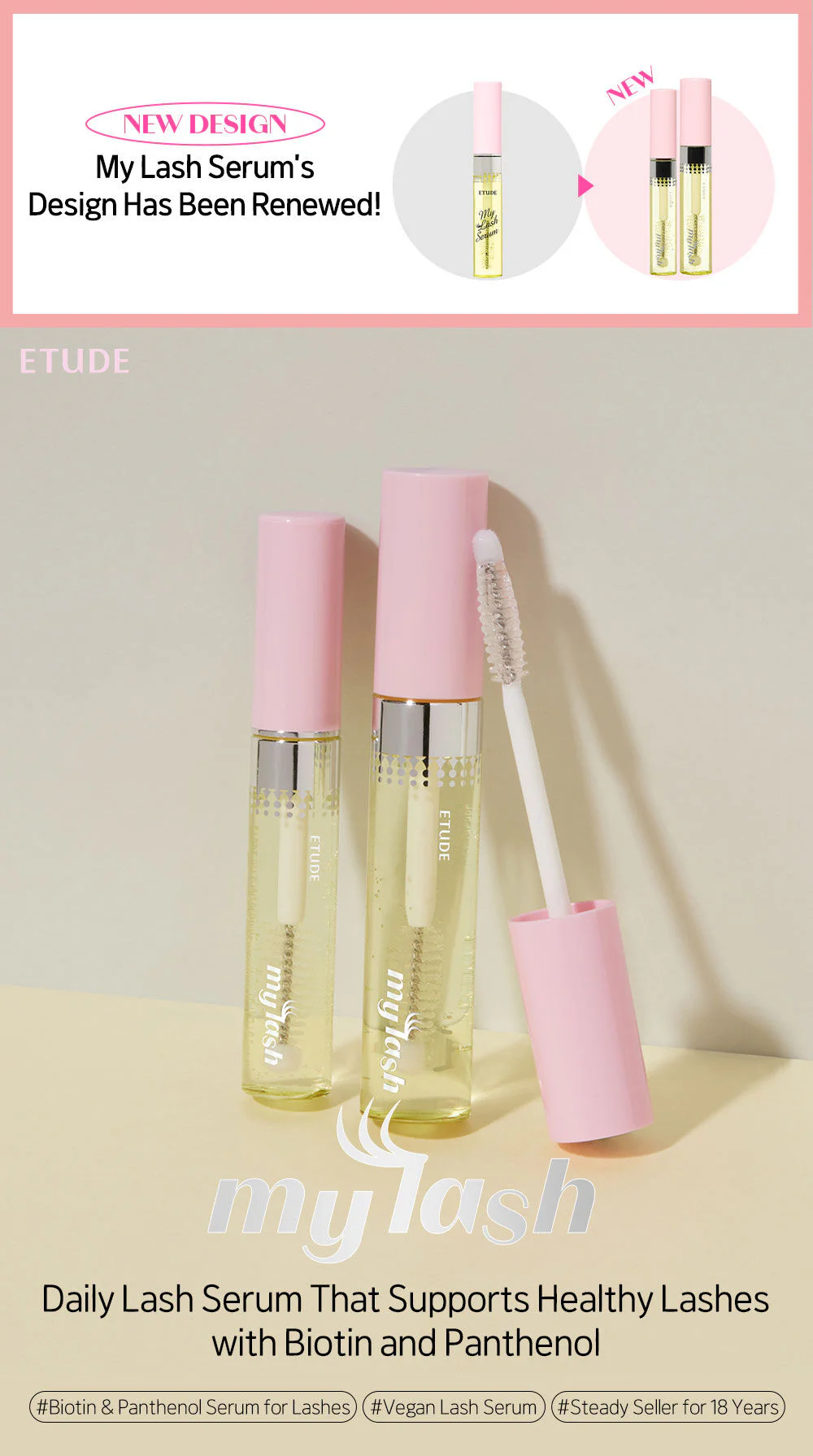 Etude My Lash Serum 9g Eyelash serum helps nourish eyelashes to be strong from the base to the tip and prevents eyelash loss. It also helps nourish and soothe the fragile skin around the eyes to relax.