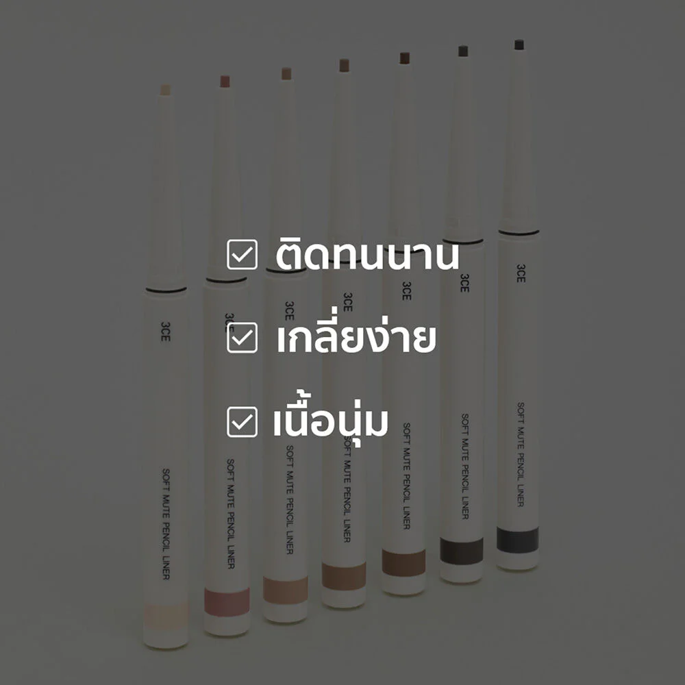 3CE Soft Mute Pencil Liner 0.1g #Milk NudeGive your eyes a gentle touch and create a warm mood withPencil eyeliner, just draw a line along the eyelid, giving a soft eye shape with sharp shades, giving a long-lasting look on the eyelid without feeling dry.