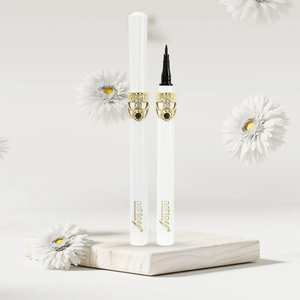 Ashley Liquid Eyeliner 0.5g Water-based eyeliner, jet black, fine brush tip, easy to write, comfortable to hold, waterproof, sweatproof, helps create various looks, adds charm to the eyes to look sharp and beautiful, comes with a simple, luxurious design, outstanding and unique.