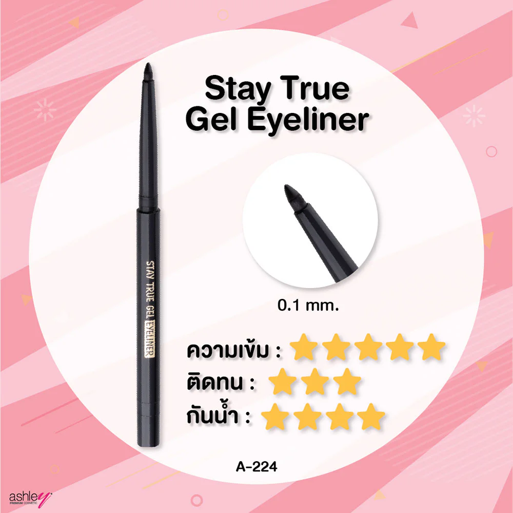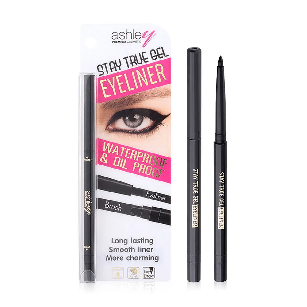 Ashley Stay True Gel Eyeliner Black 1.5g Dark black eyeliner gel, dark texture, soft pencil head, easy to write. draw even lines Comes with a brush to help blend the lines. natural beauty
