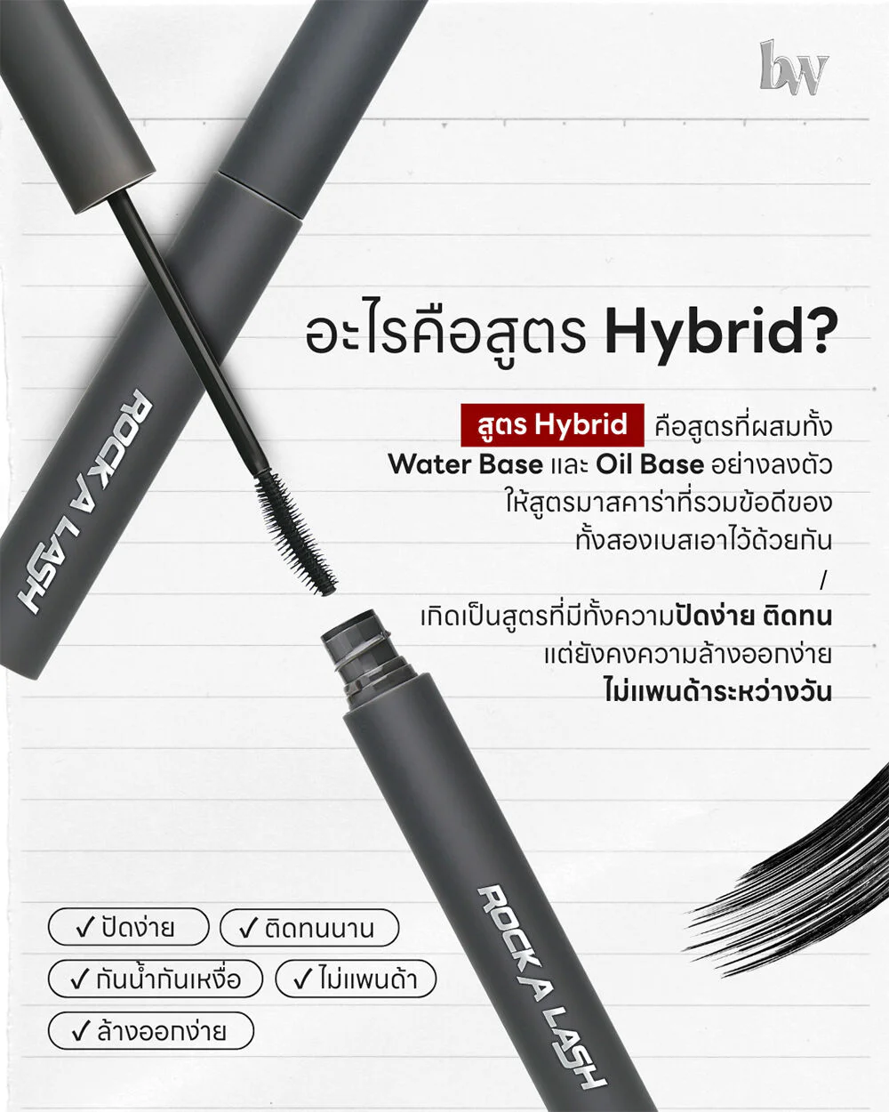 beWiLD Rock A Lash Mascara 6g #LockMascara This special formula mascara makes your eyes stand out, helping your lashes appear naturally longer, thicker, and more defined. Its silicone brush head is designed to fit the shape of your eyes, allowing the mascara to reach the base of your lashes without smudging. It also features Super Fiber Lash innovation from Japan, helping to lengthen your lashes. Jojoba Oil extract moisturizes and strengthens your lashes, while Trifolium Pratense Extract nourishes your lashes, giving you confidence in sparkling eyes in every situation.