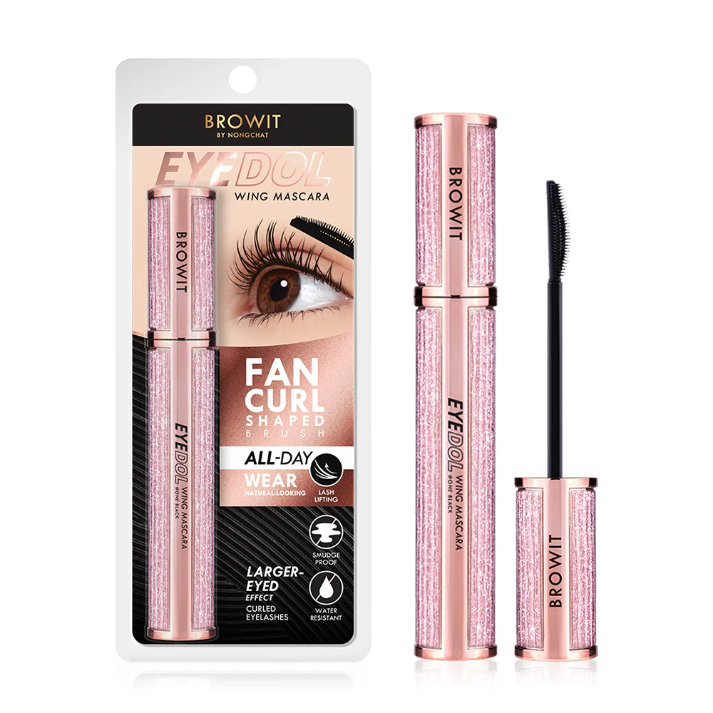 Browit Eyedol Wing Mascara 8g #One Black Mascara formula for bouncy eyelashes With a fan-shaped brush head that's suitable for every eye shape. Can be brushed up to the base of the eyelashes. Let the eyelashes line up line by line. Helps increase length and thickness to look beautiful and natural. Contains clear pigments that coat the eyelashes as smoothly as real eyelashes. Create dimensions to make your eyes bigger. Combined with natural extracts including Macadamia oil, olive oil, grapeseed oil and shea butter Helps nourish eyelashes to be shiny, moisturized, and helps strengthen eyelashes.