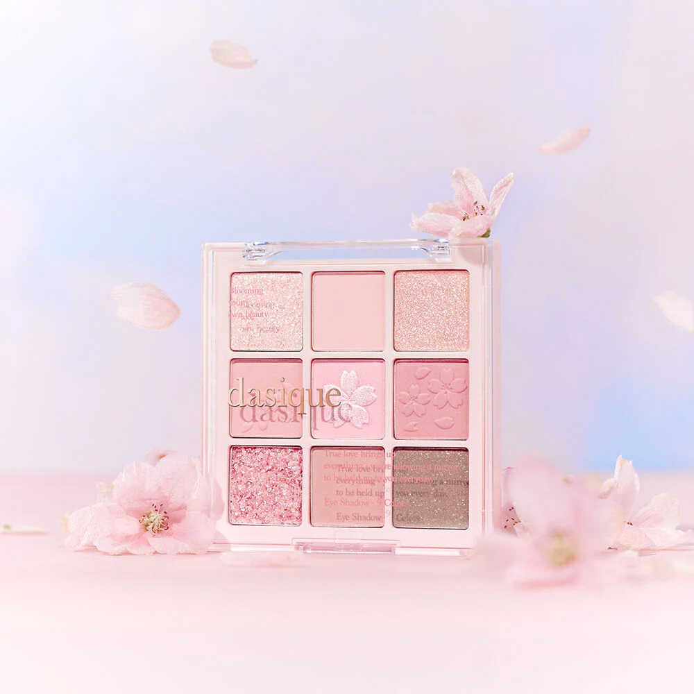 Dasique Shadow Palette 7.6g #Romantic Blossom The 9-shade eyeshadow palette from the Romantic Blossom Edition collection has 3 textures in one palette, including matte, shimmer and glitter. The texture is smooth and shiny with the colors of cherry blossom petals, creating a bright and lively look.