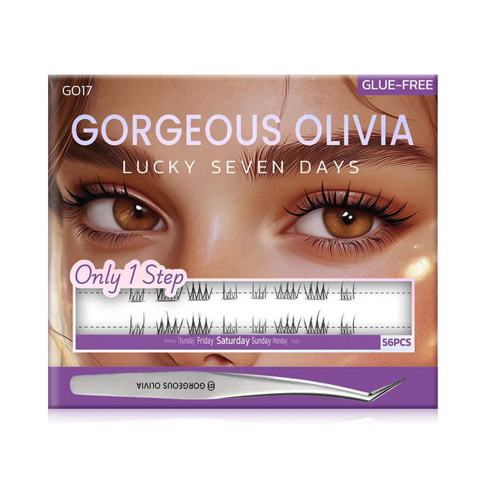 Gorgeous Olivia Lucky 7 Days 56pcs #Saturday + Tweezers 1pc Self-adhesive false eyelashes made from premium synthetic fibers.Soft like real eyelashes Make your eyes stand out and give a beautiful, natural look. Plus, get free eyelash tweezers!