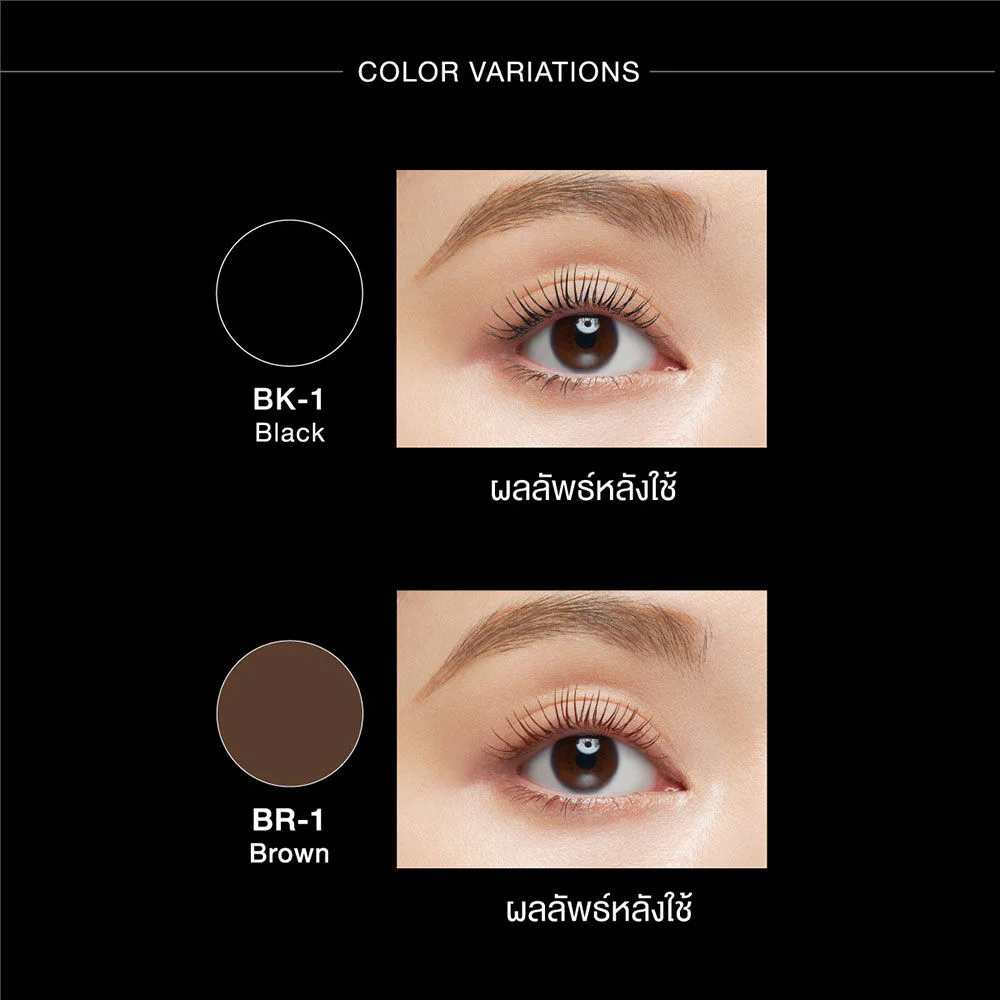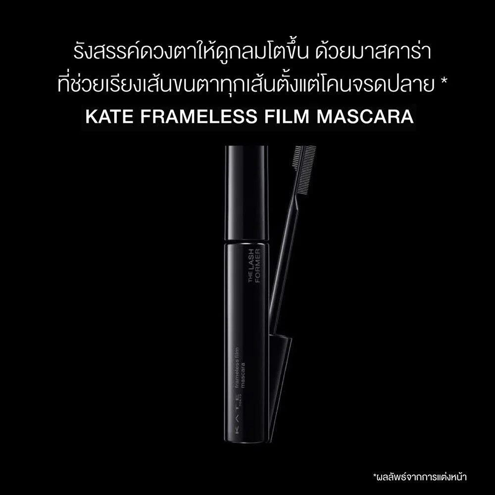 KATE Frameless Film Mascara 8g #BK-1 Make your eyes look bigger with a black, double-sided mascara brush that helps to keep your eyelashes in line from root to tip.