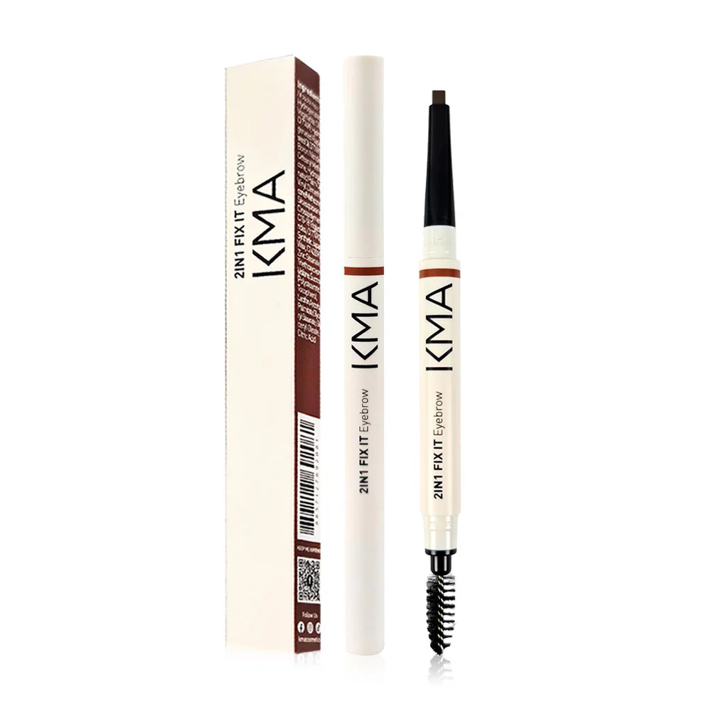 KMA 2In1 Fix It Eyebrow 0.16g #N2 Automatic rotating eyebrow pencil with a flat tip that helps you draw your eyebrows into the shape you want easily. Comes with a brush to make your eyebrows look natural. Lasts all day long.