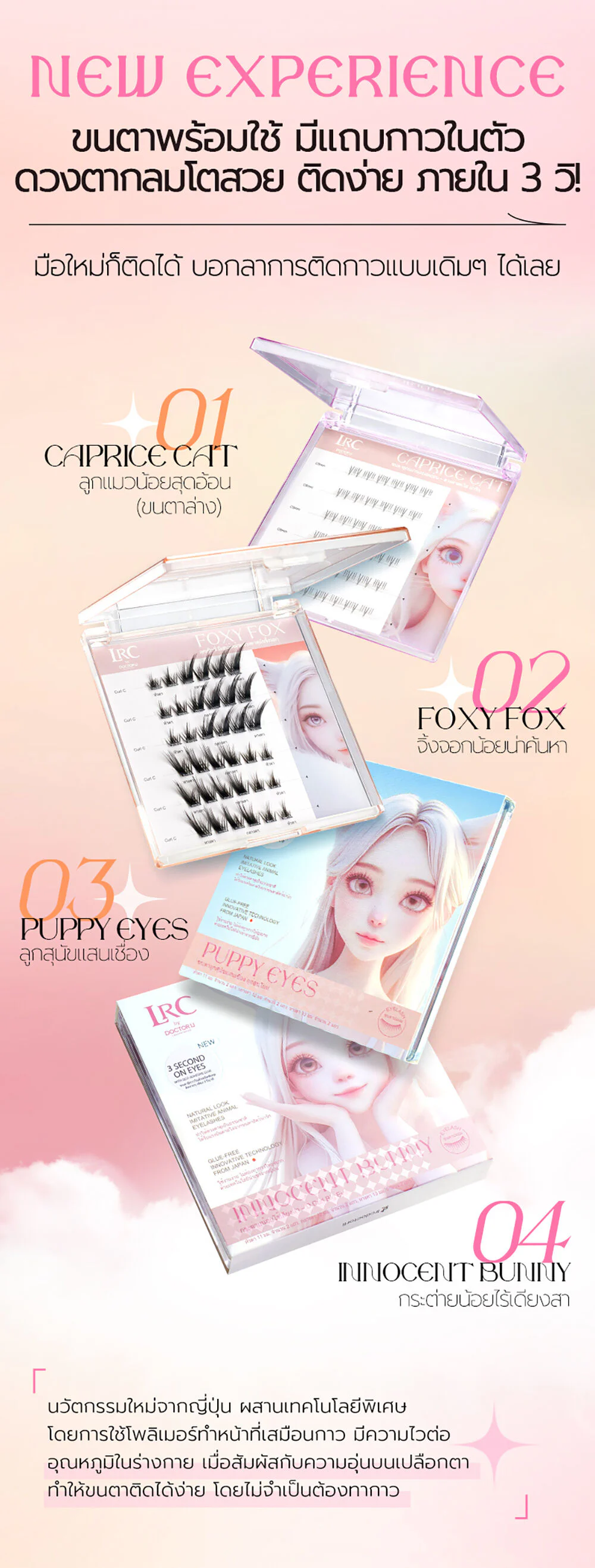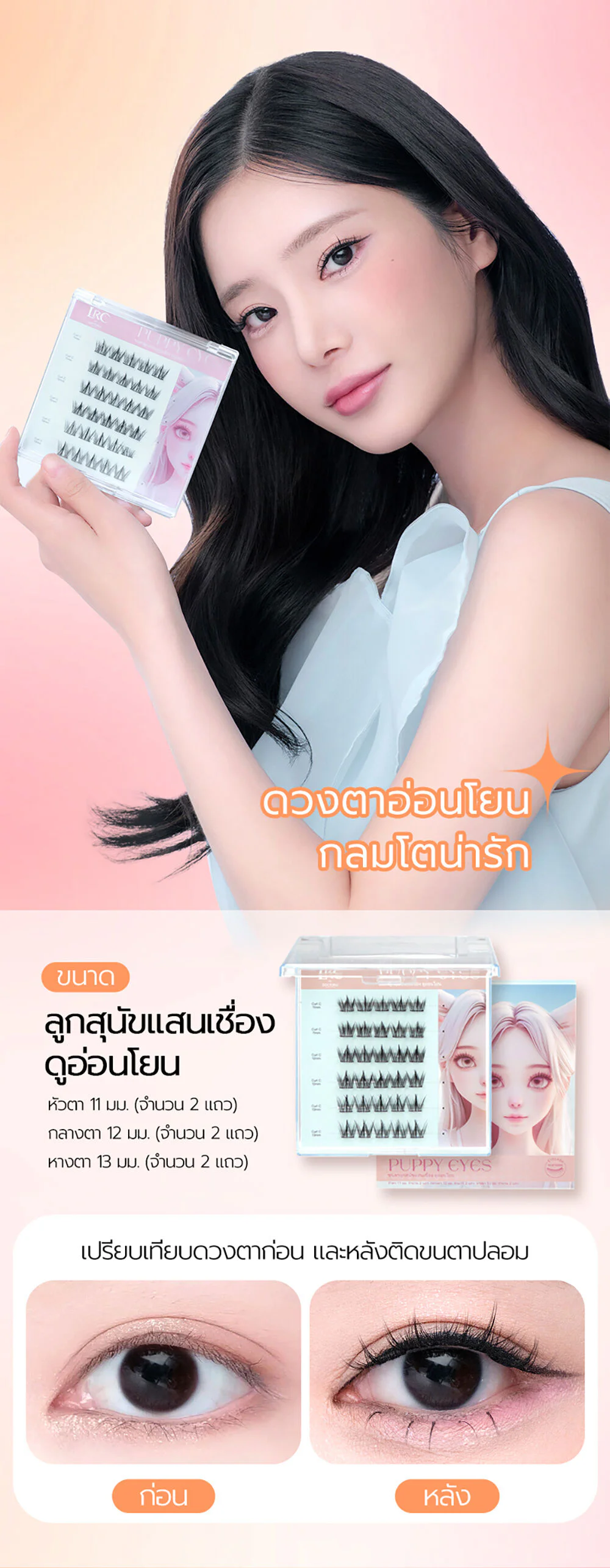 LRC Eyelash Puppy Eyes 30pcs Self-adhesive false eyelashes made from silk protein. Easy to apply, lightweight, and natural-looking. Perfect for those in a hurry to apply makeup. Gives your eyes a beautiful, round, and gentle look.