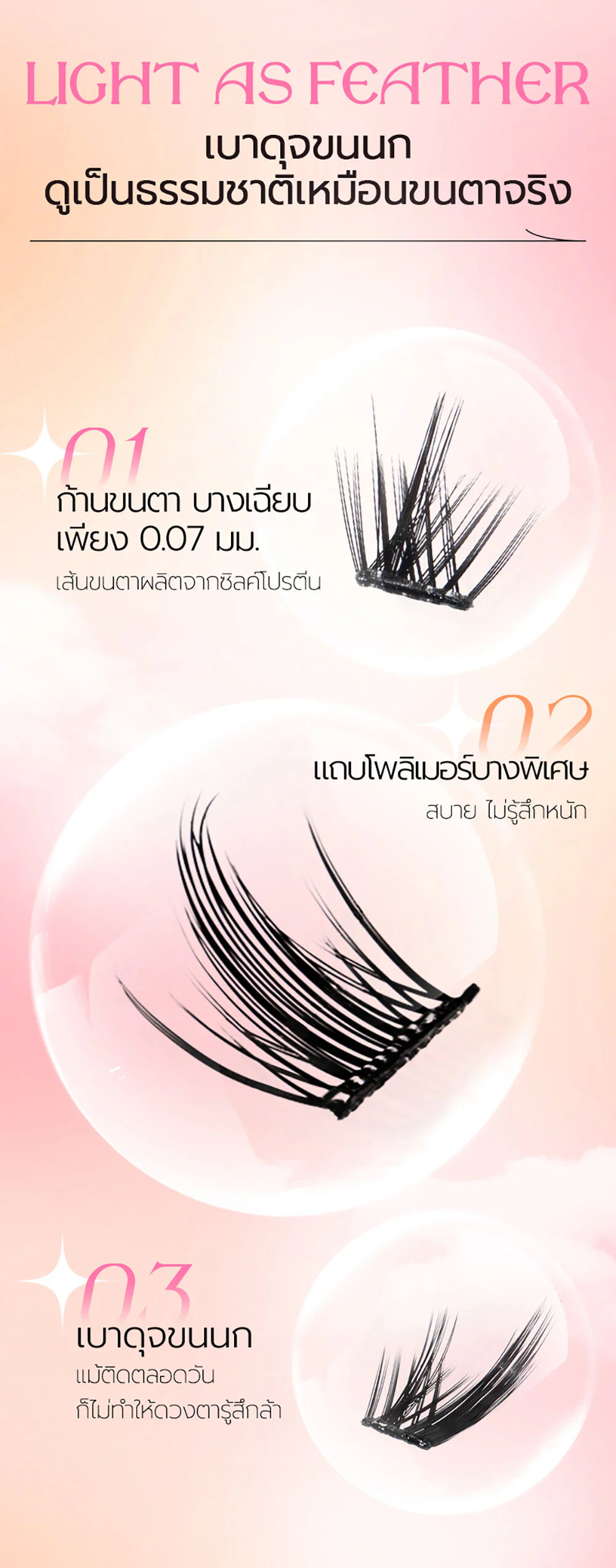 • Ultra-thin eyelash stems, only 0.07 mm.