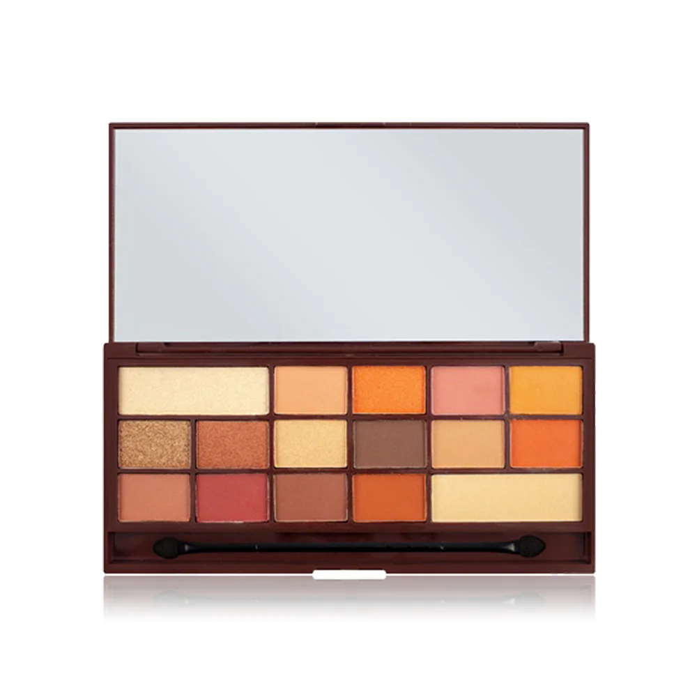 Makeup Revolution I Heart Revolution 22g #Chocolate Orange Eyeshadow palette of 16 shades, comes in a chocolate bar form. With a light aroma of chocolate, there are both matte and shimmer textures. Beautiful pigments, sharp, easy to blend, long lasting, add color to the eyes to look outstandingly beautiful.